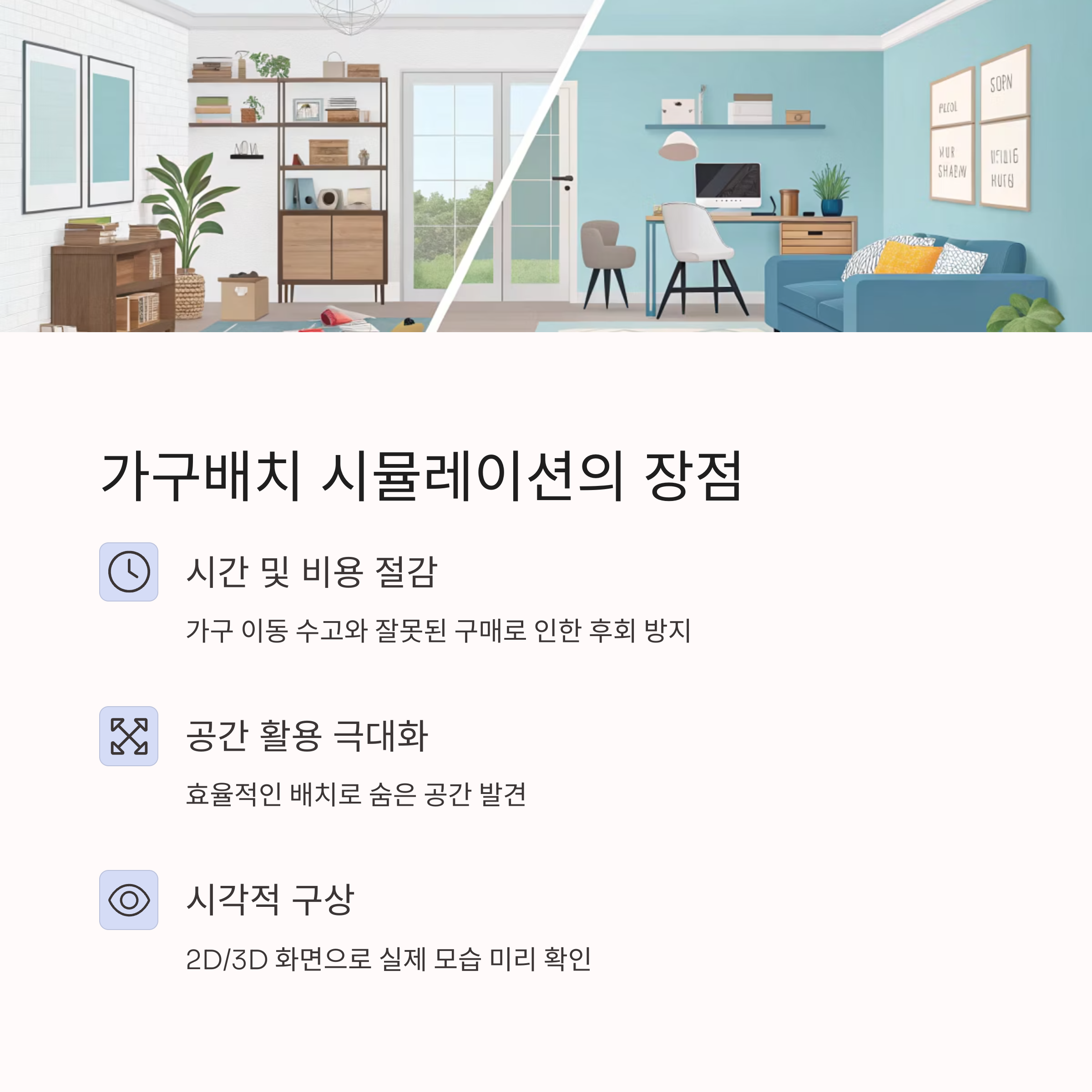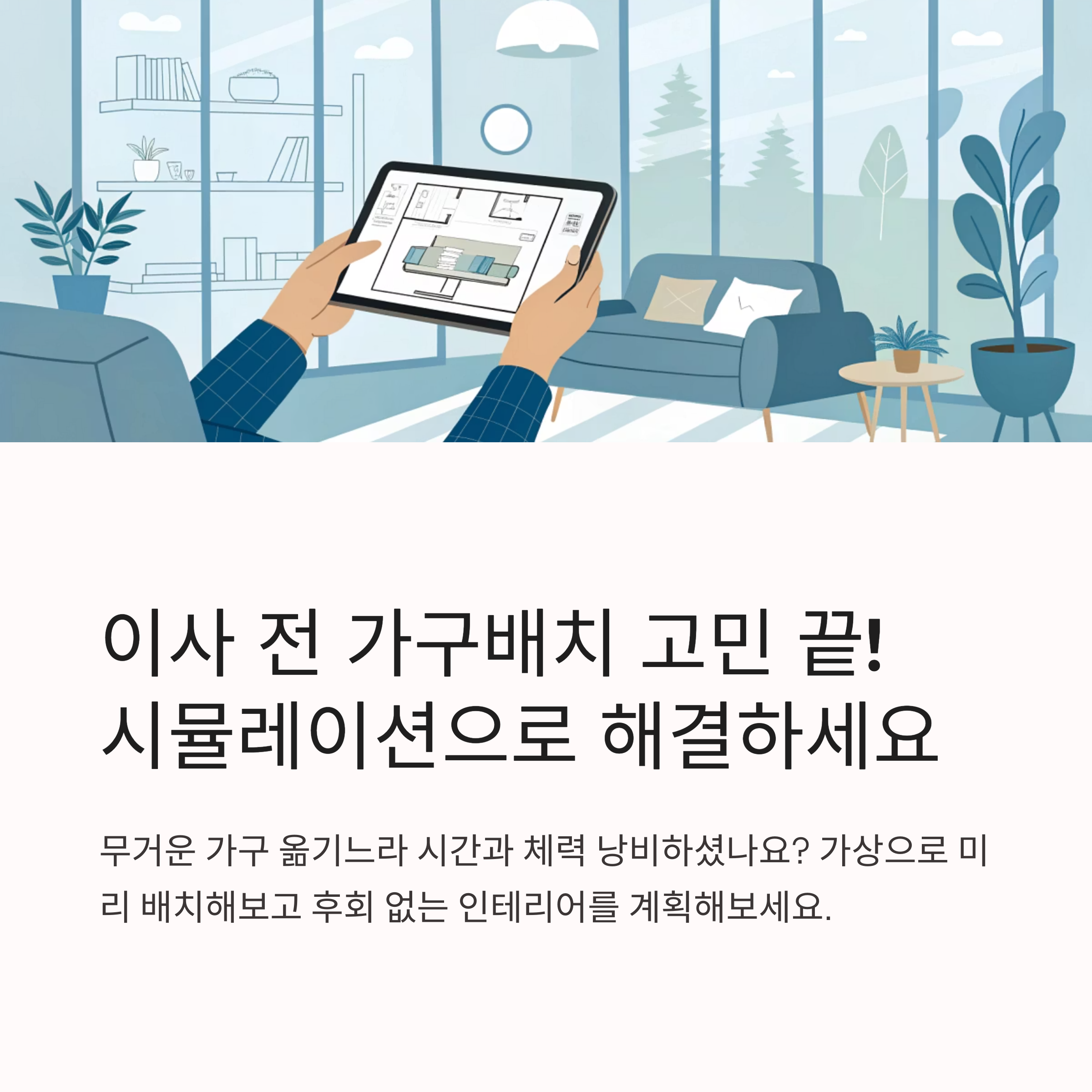 - 시간 및 비용 절감: 가구를 직접 옮기는 수고를 덜고, 잘못된 가구 구매나 배치로 인한 후회를 막을 수 있습니다.