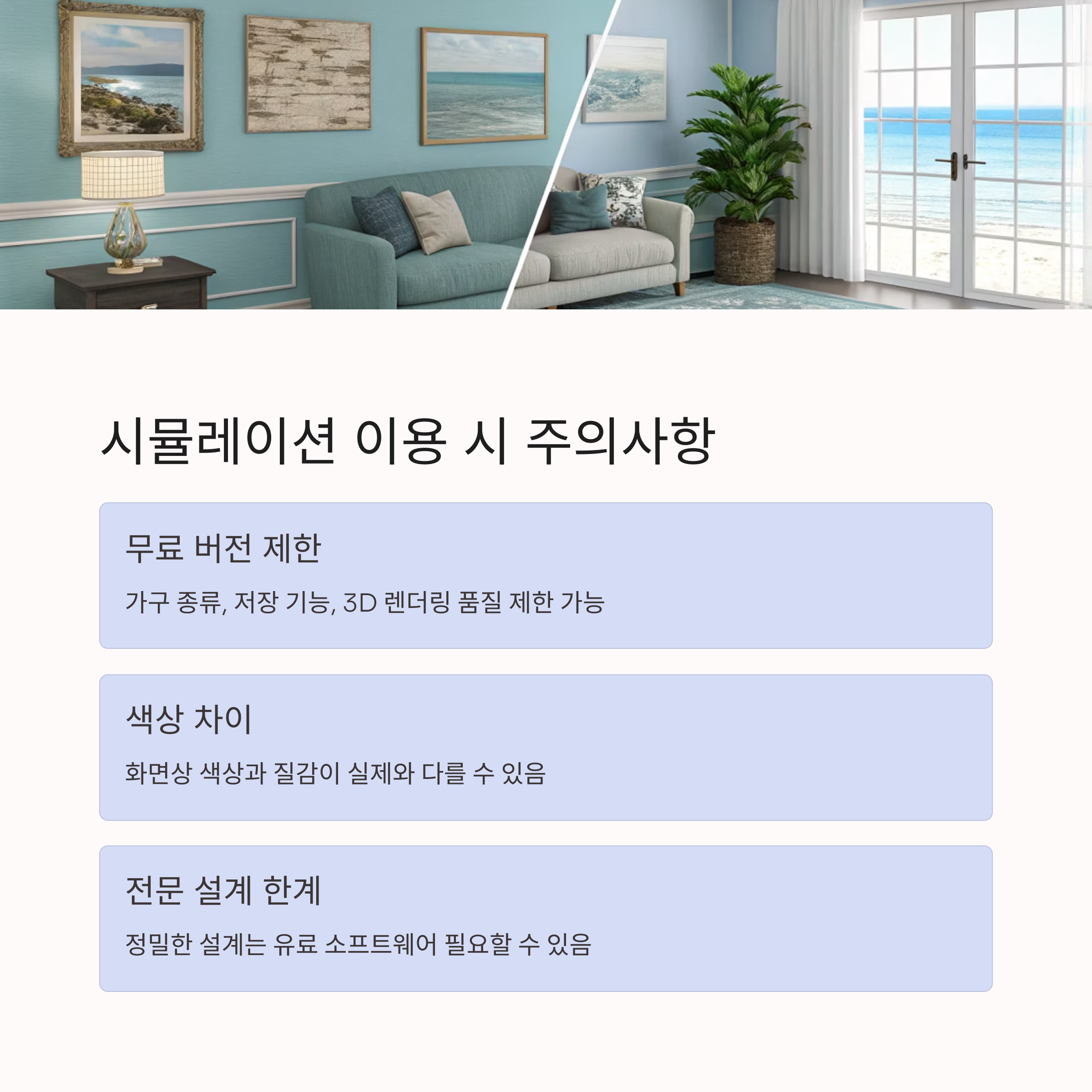 가구배치 시뮬레이션은 매우 유용하지만, 몇 가지 유의할 점도 있습니다.