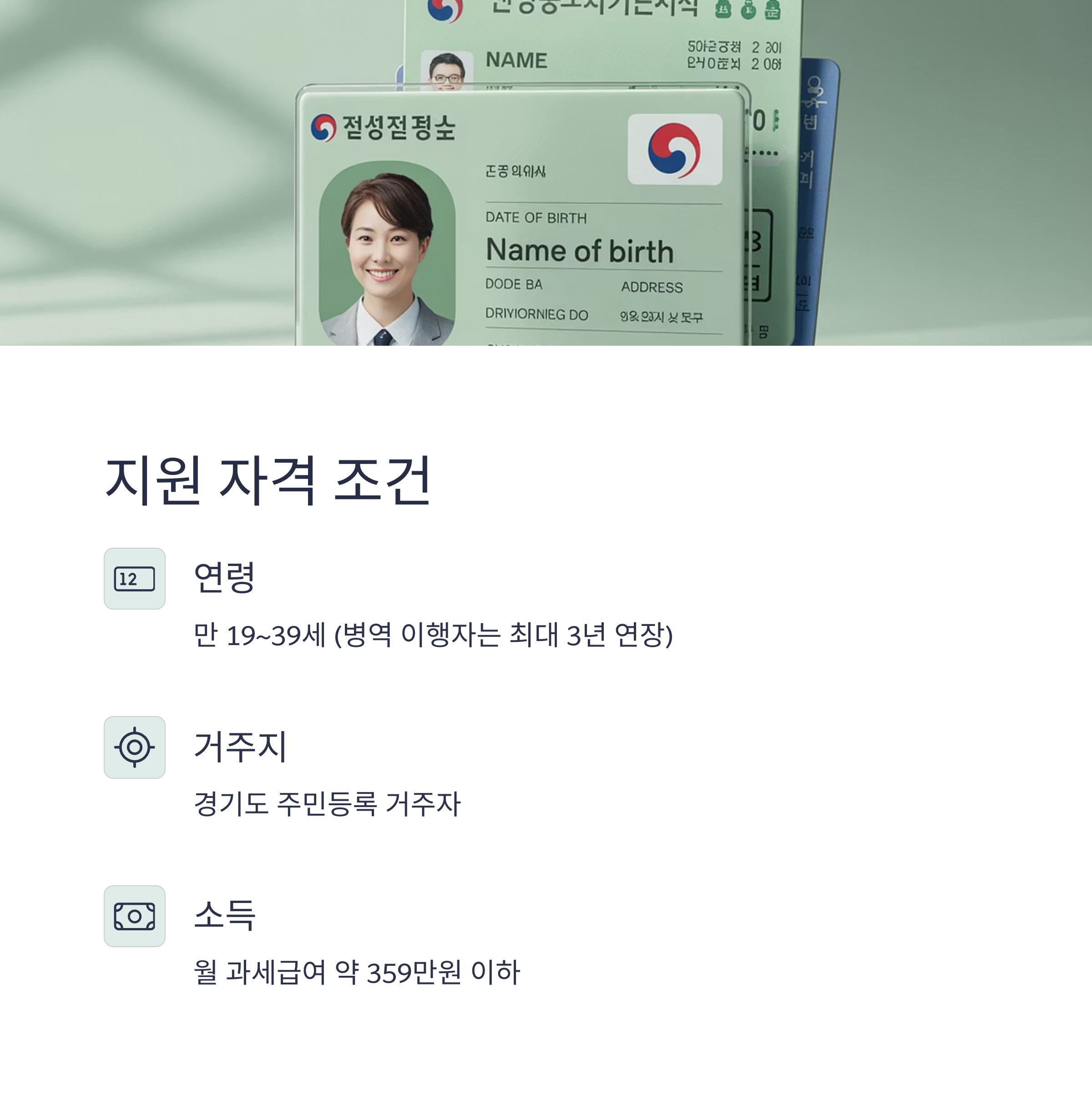 - 연령: 만 19세~39세 이하(병역의무 이행자는 이행 기간만큼 연장, 최대 3년)