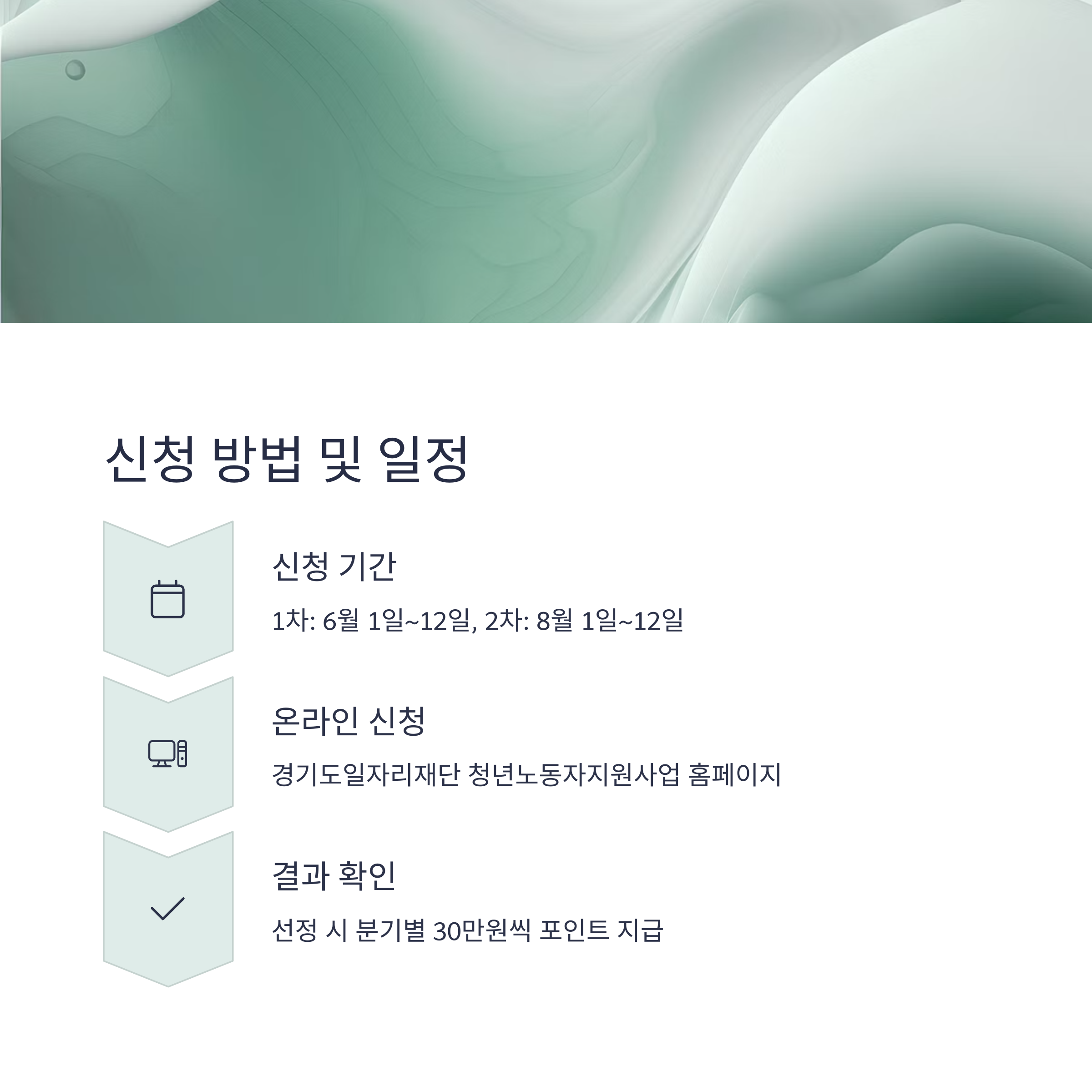 선정 결과는 홈페이지에서 확인, 선정 시 경기청년복지몰 계정에 분기별 30만 원씩 연 120만 원 포인트 지급