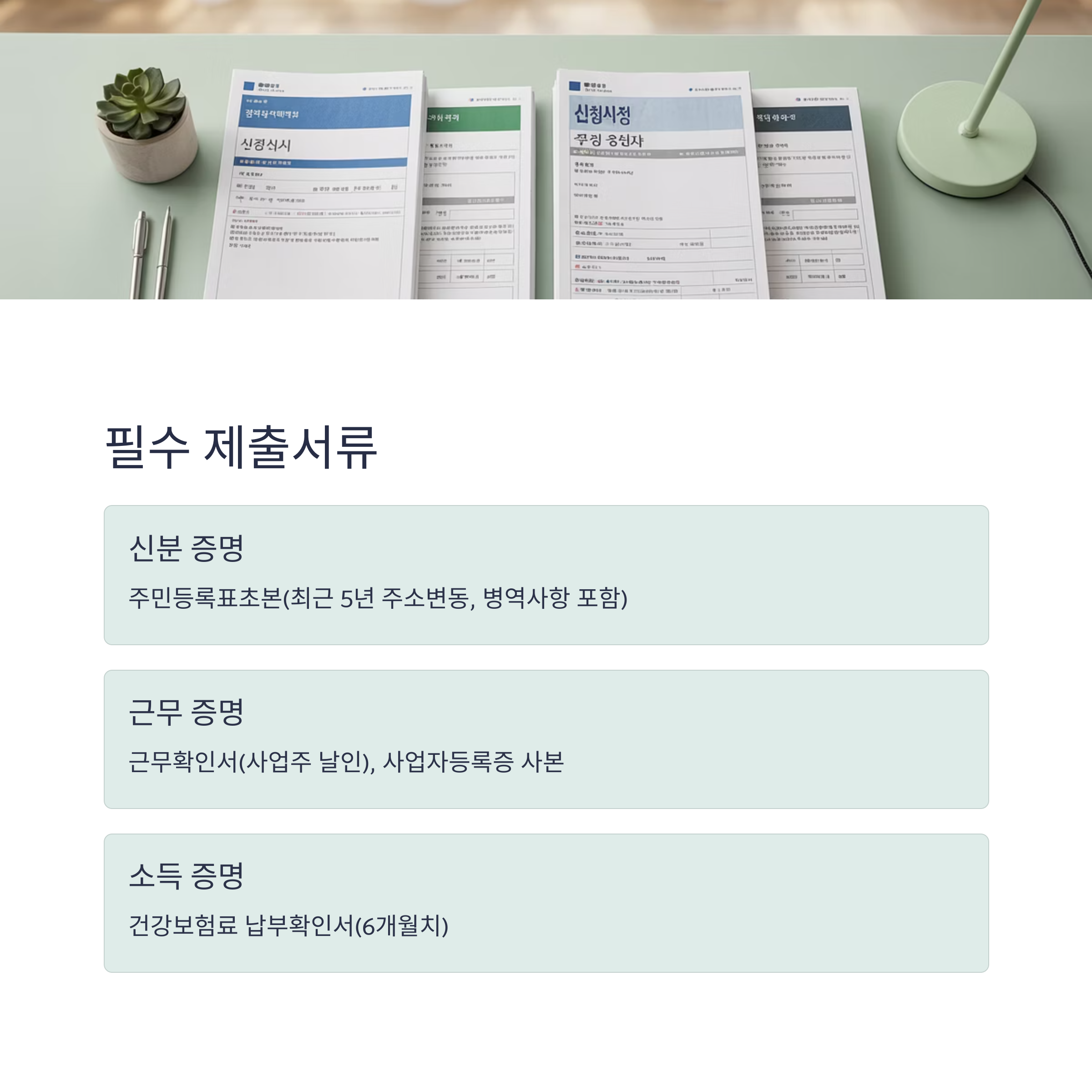 - 건강보험료 납부확인서(6개월치, 국민건강보험공단 발급)