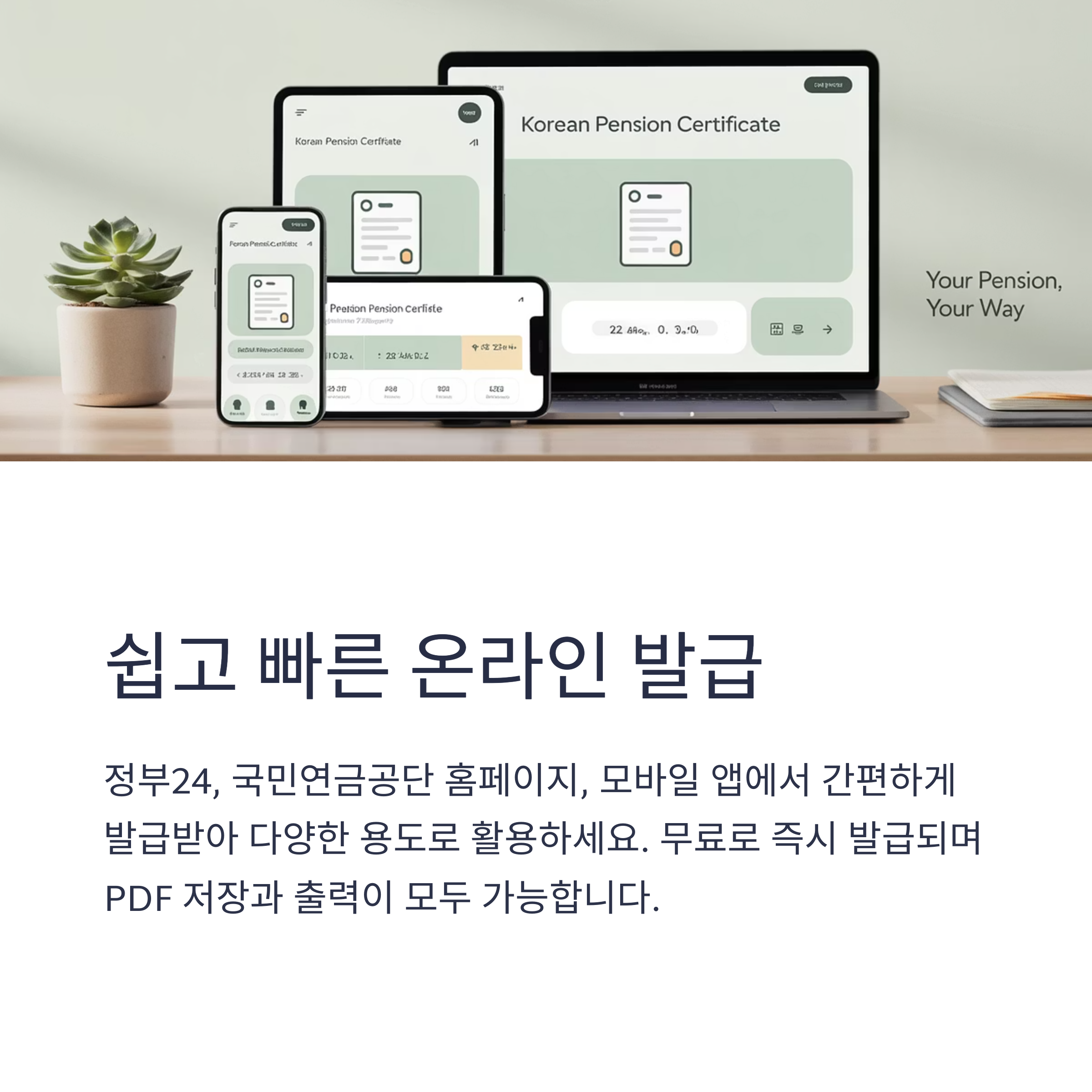- PC와 모바일 모두 지원되며, 모바일에서는 ‘내 곁에 국민연금’ 앱을 이용하세요.