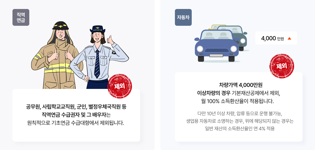 기초연금은 공무원연금, 군인연금, 사학연금 등 직역연금 수급자에게는 지급되지 않습니다. 본인 또는 배우자가 해당 연금을 받고 있다면 탈락 대상입니다.