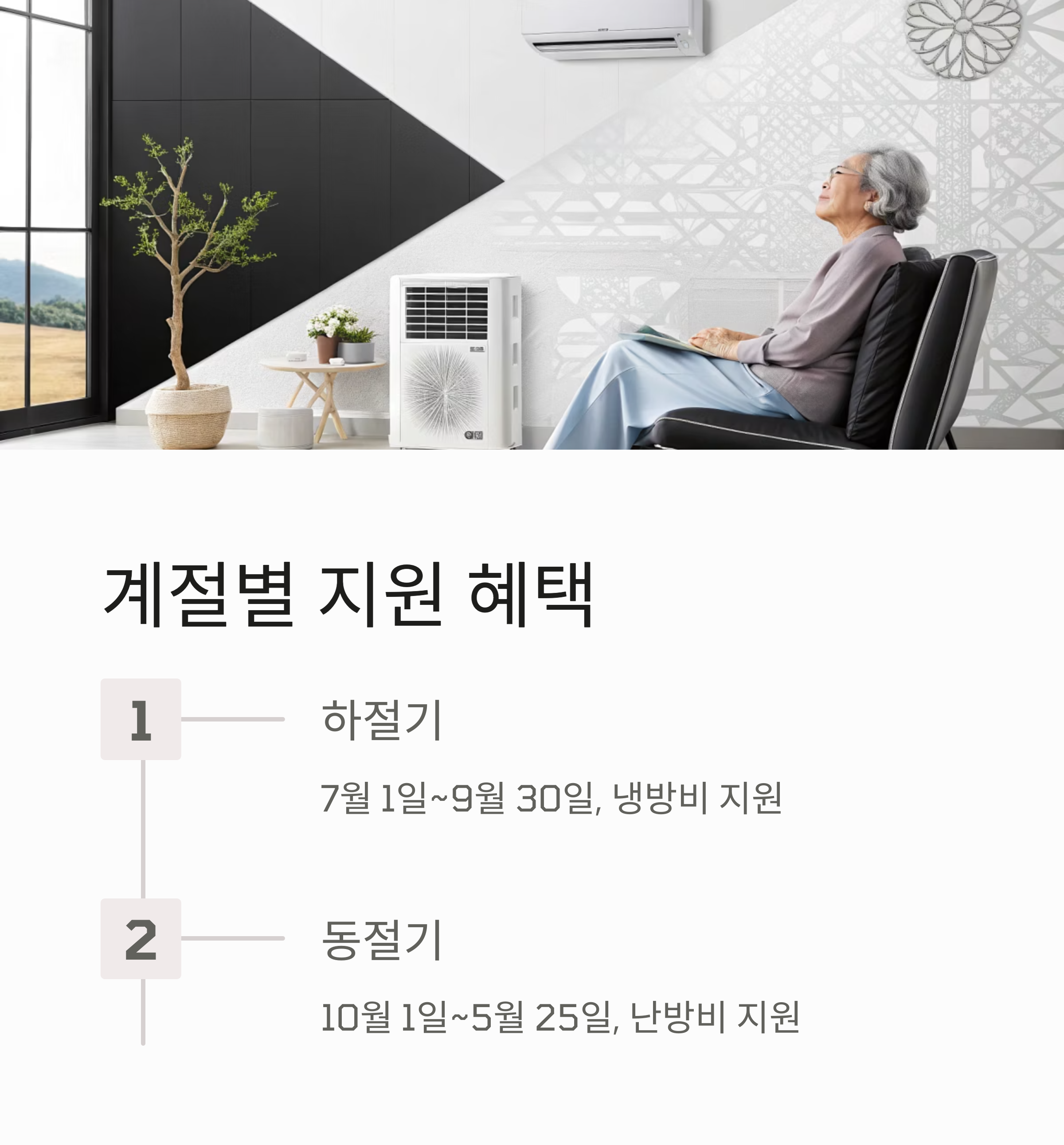 신속하고 간편한 절차로 하절기와 동절기 모두 지원 혜택을 누릴 수 있습니다.