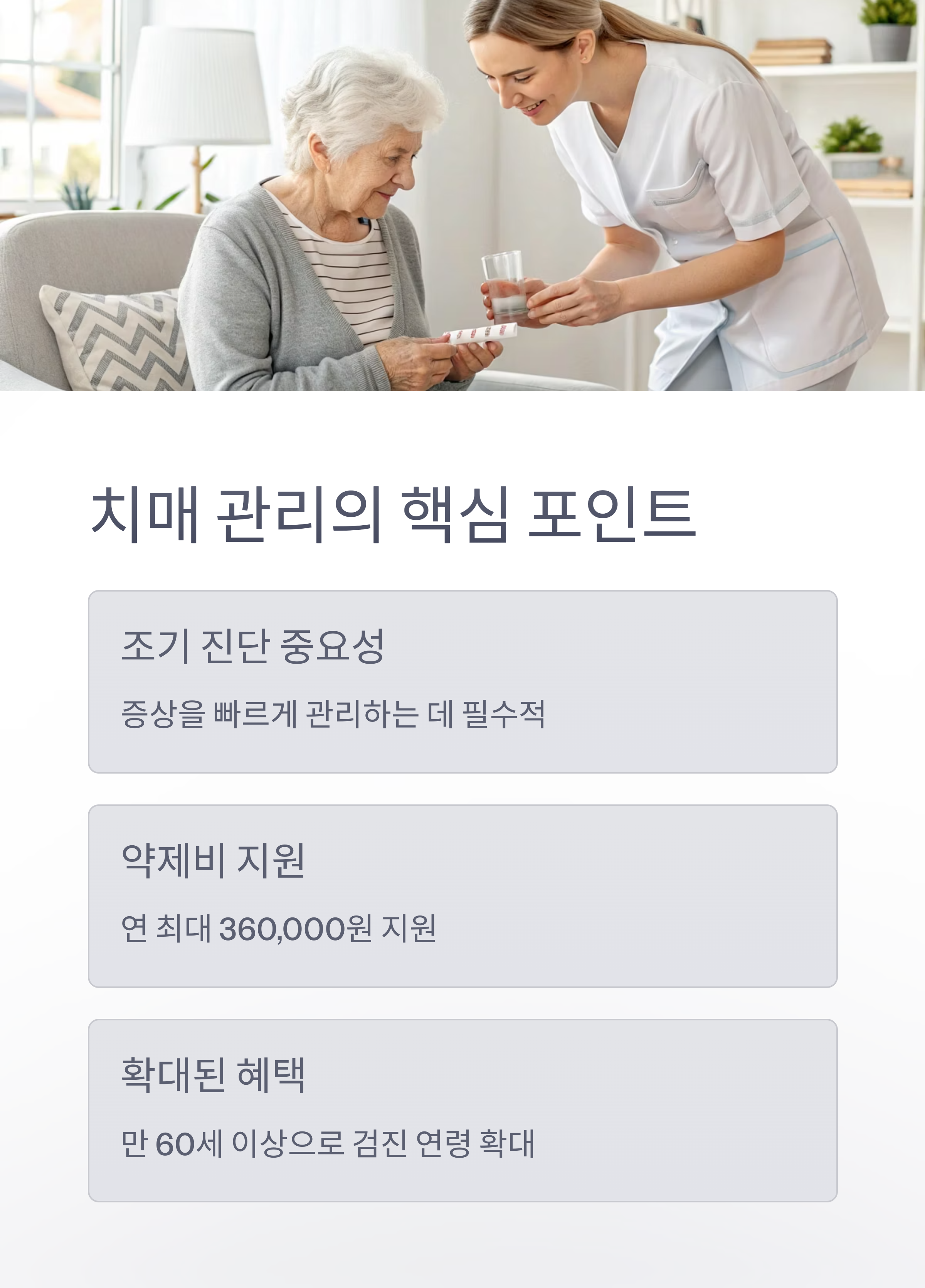 치매 조기검진과 치료비 지원은 고령화 사회에서 꼭 필요한 공중보건 전략입니다.