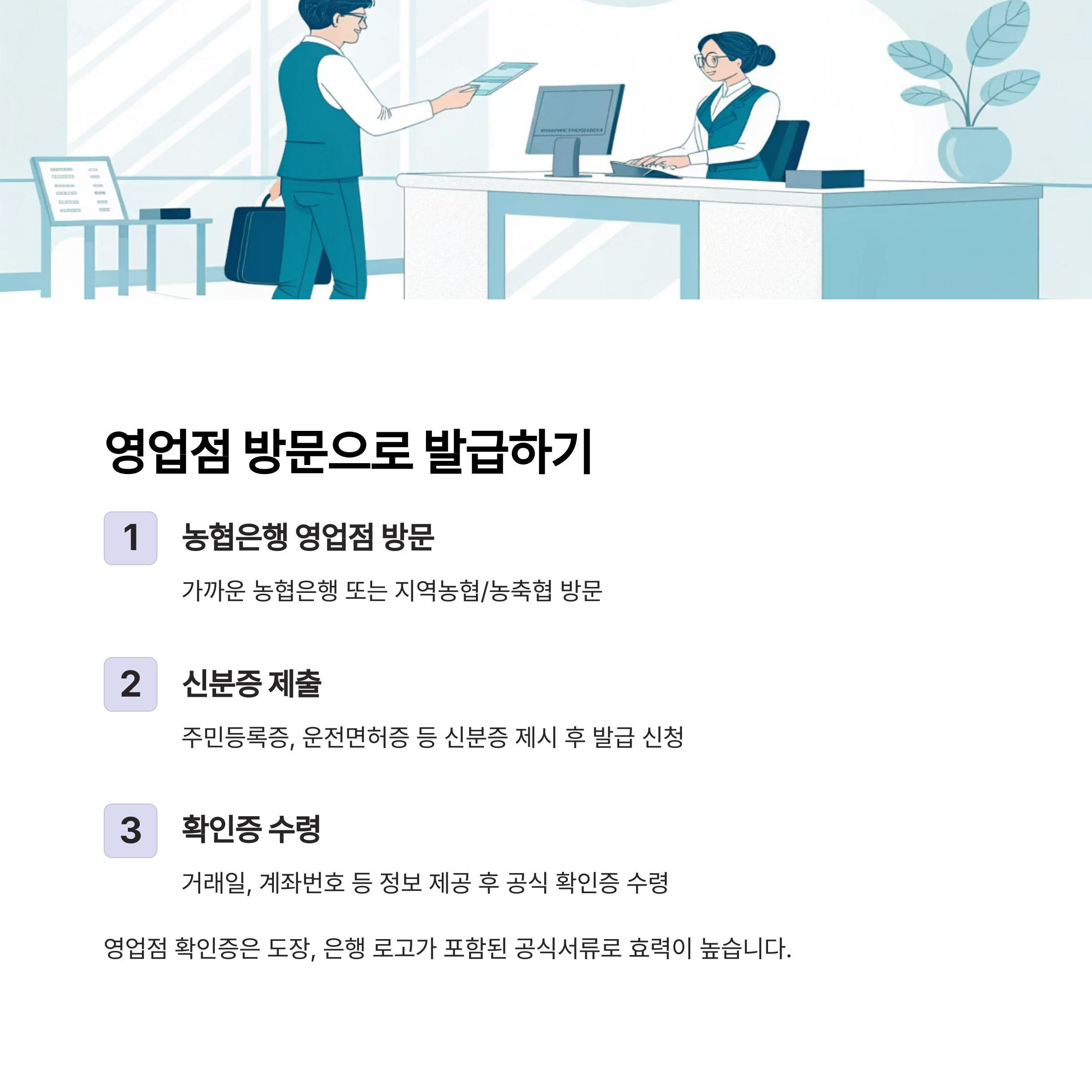 - 가까운 농협은행 영업점(혹은 지역농협/농축협) 방문