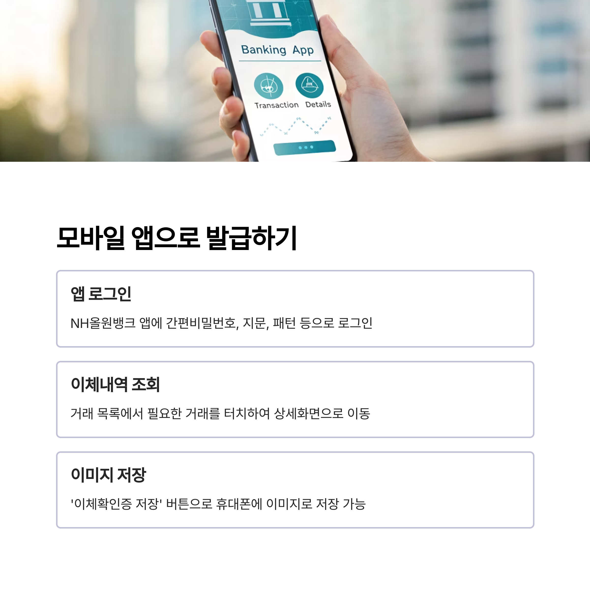 2. NH올원뱅크 등 모바일 앱에서 이체확인증 발급 및 저장 방법