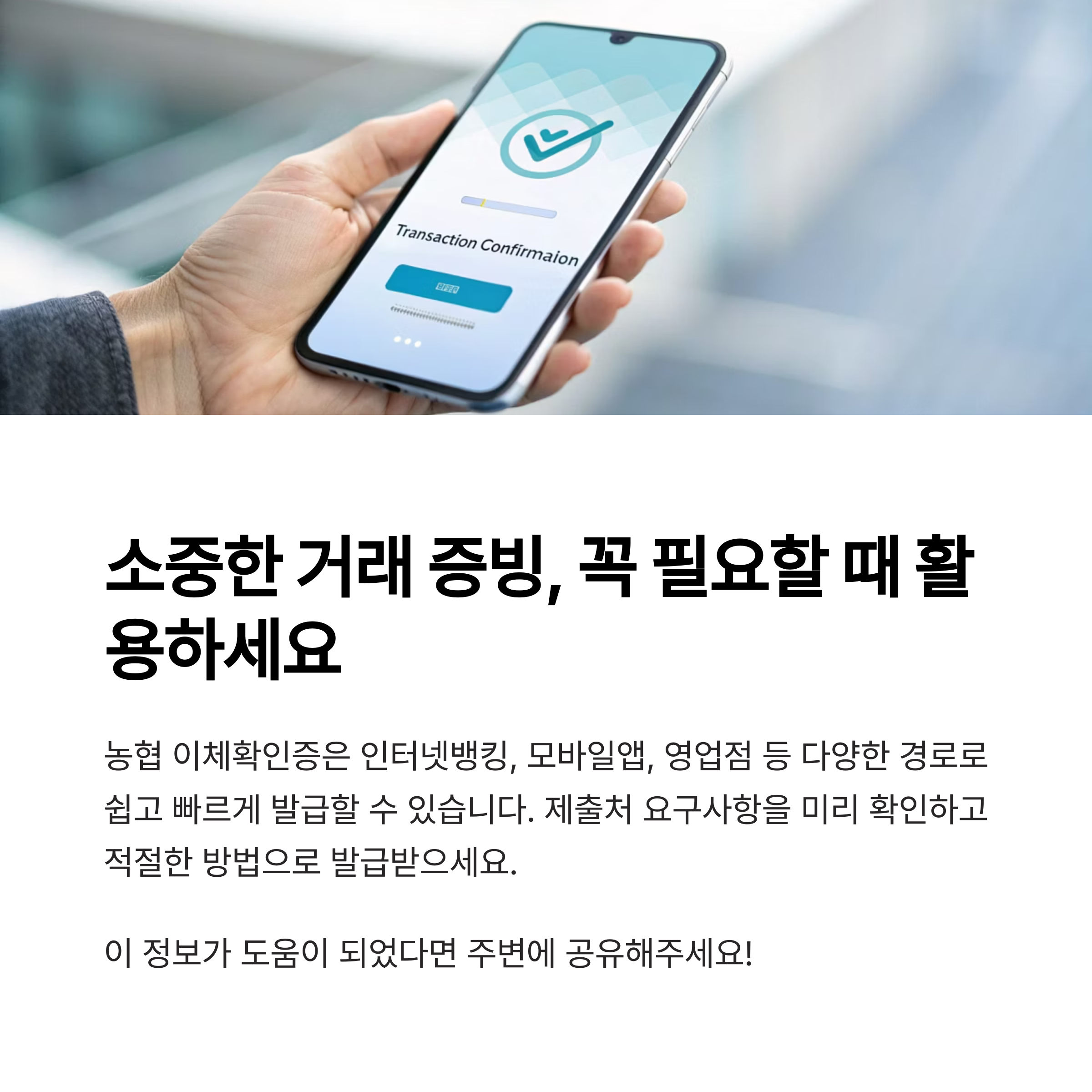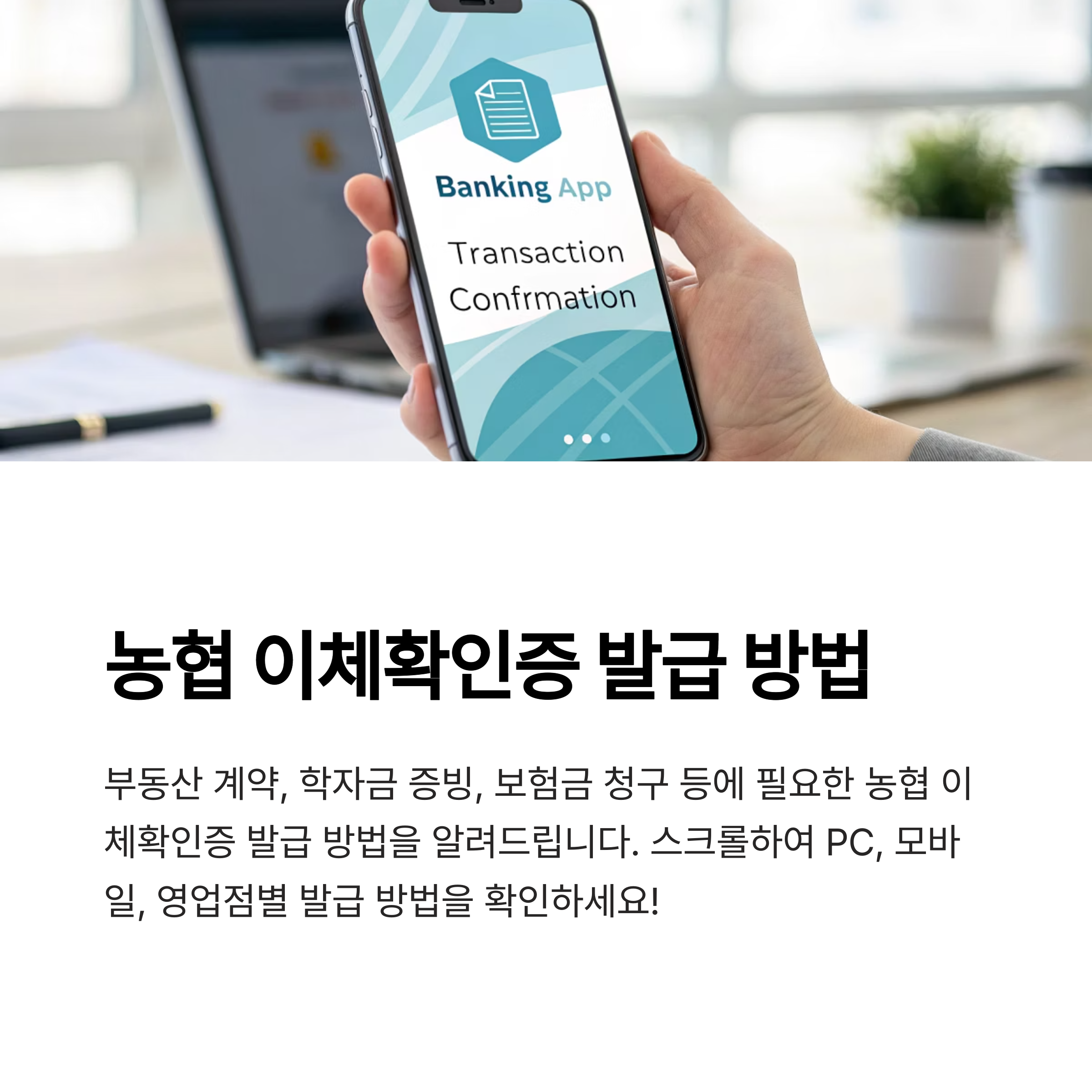 이체확인증(송금확인증)은 부동산 계약, 학자금 증빙, 보험금 청구, 각종 행정·법적 용도 등에서 은행 계좌에서 송금·이체가 실제로 실행되었음을 공식적으로 증명하는 서류입니다. 농협은 PC 인터넷뱅킹, 모바일 앱, 영업점 방문 등 다양한 방법으로 이체확인증(혹은 이체확인서, 송금확인증)을 발급할 수 있습니다. 아래에서 각 방법별 절차, 준비물, 발급 시 주의사항까지 1500자 이상으로 꼼꼼하게 안내합니다.