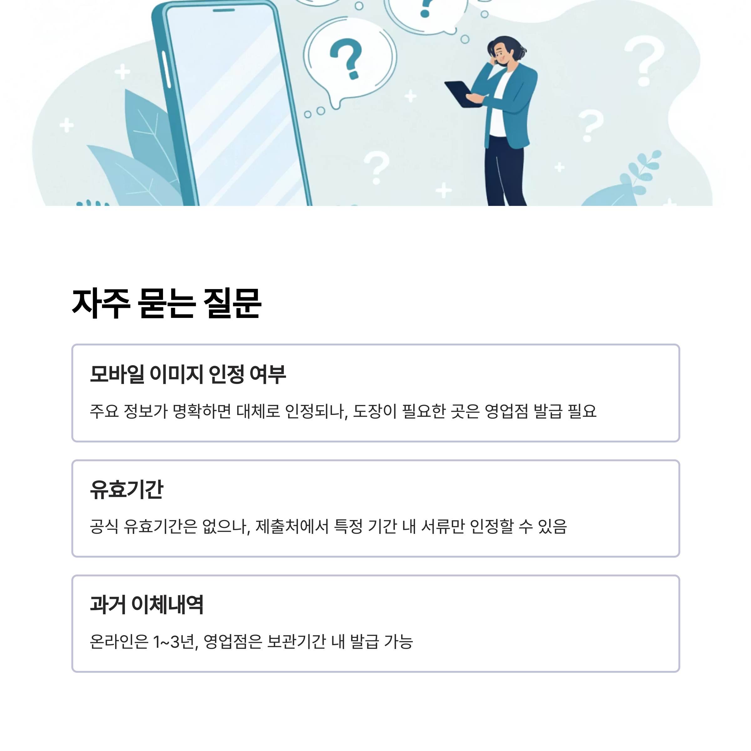 A. 공식 유효기간은 없으나, 제출처에서 ‘최근 3개월, 6개월 이내’ 등 특정 기간 내 서류만 인정할 수 있습니다. - Q. PDF 출력이 어려우면 어떻게 하나요?