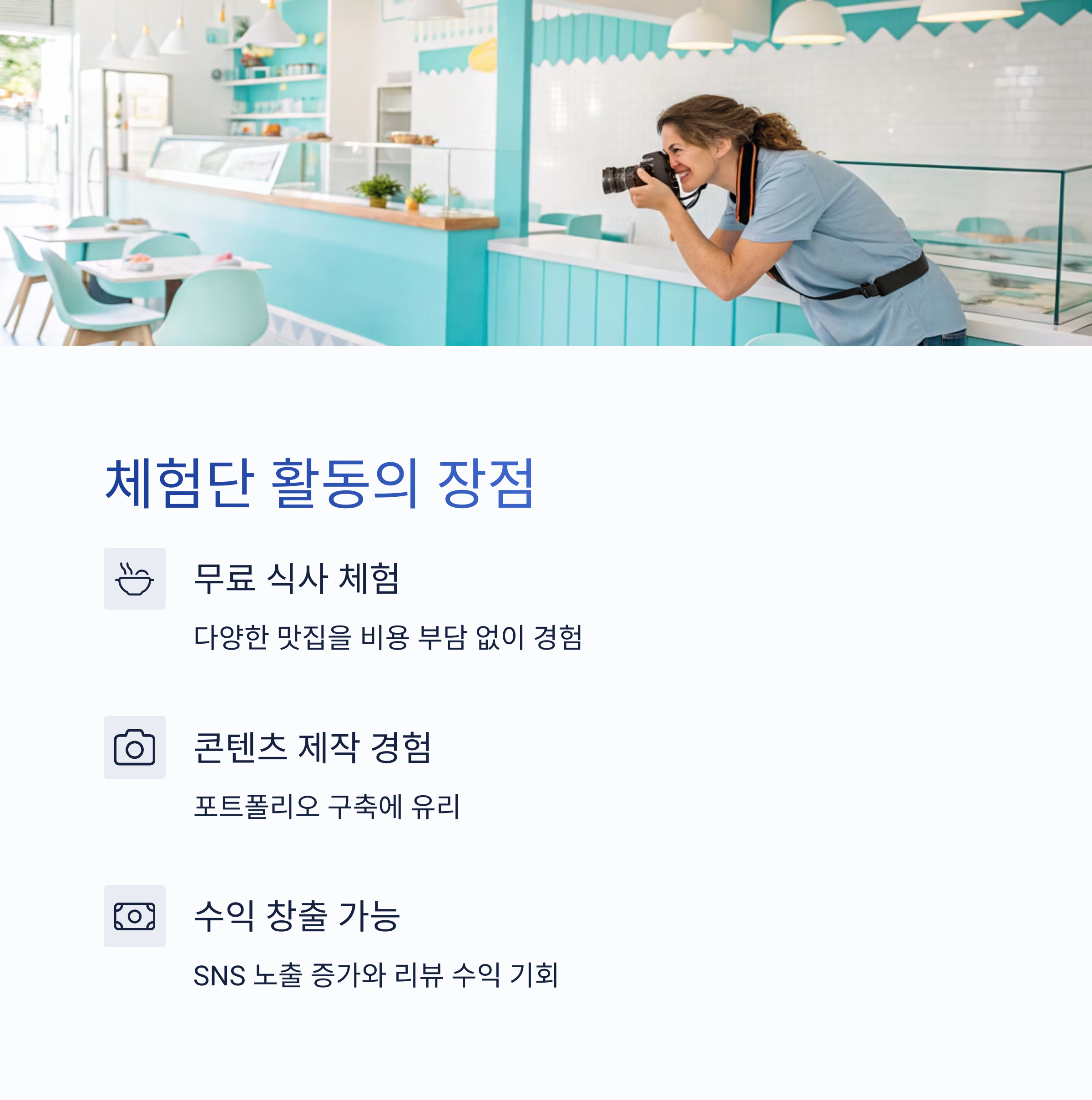 - 무료 식사 + 콘텐츠 제작 경험