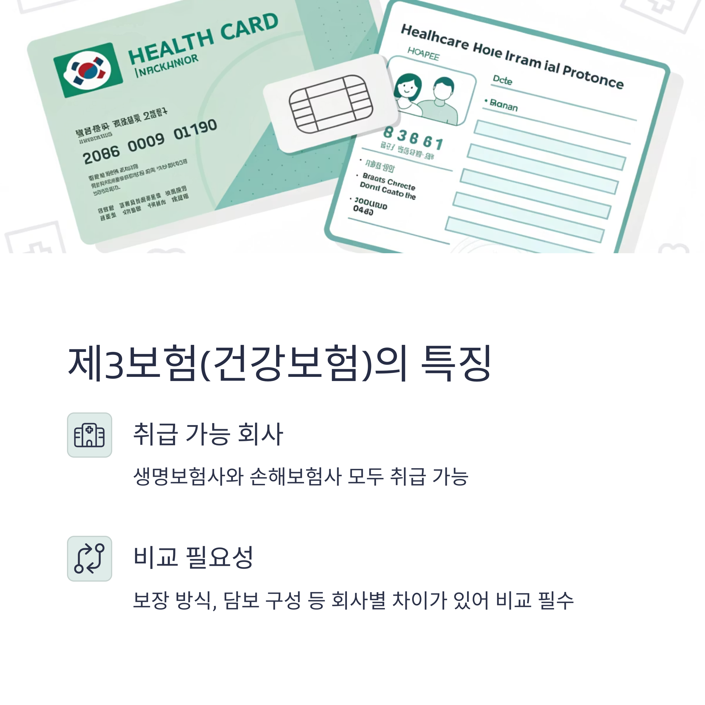 - 제3보험(상해, 질병, 간병 등)은 생명보험사와 손해보험사 모두 취급할 수 있습니다.