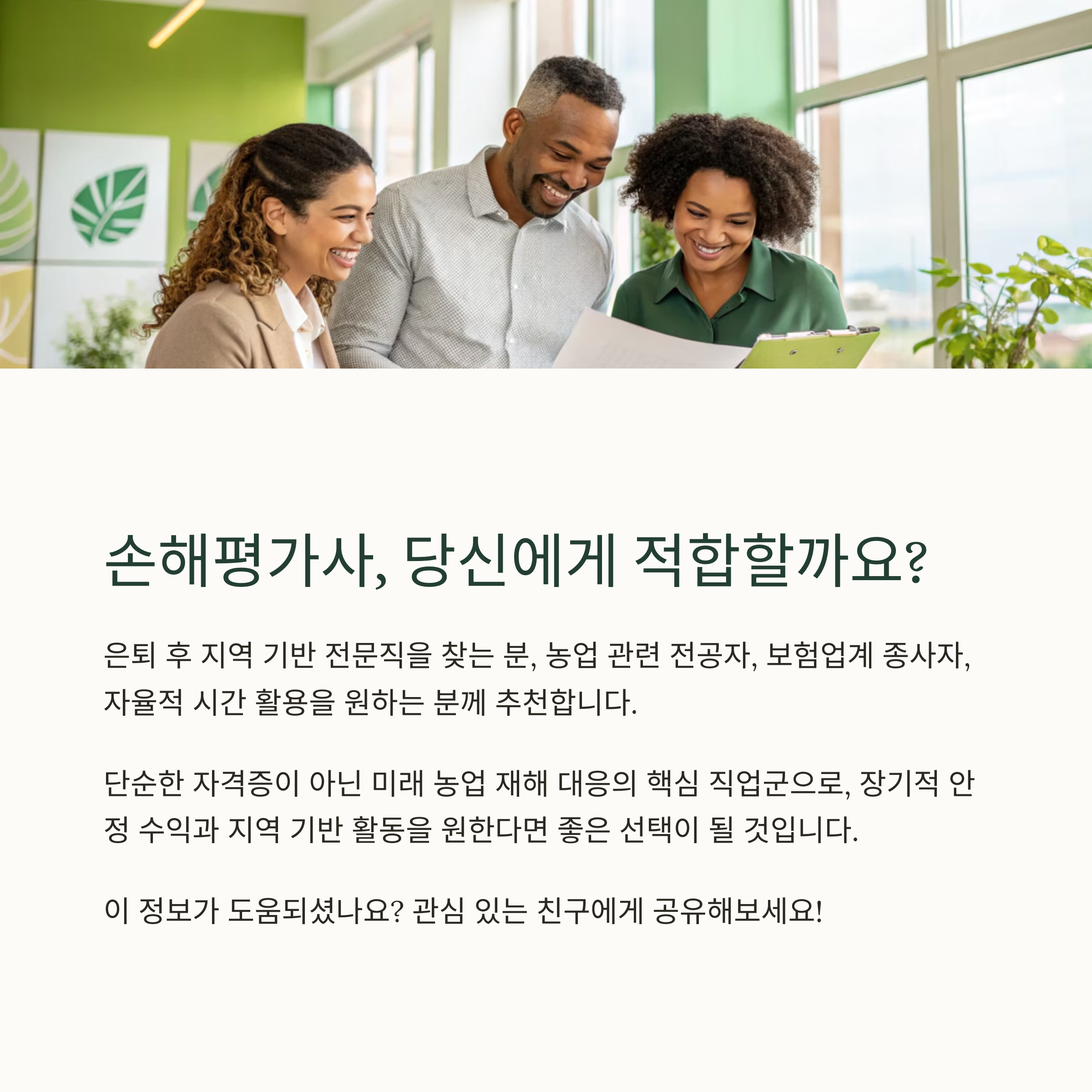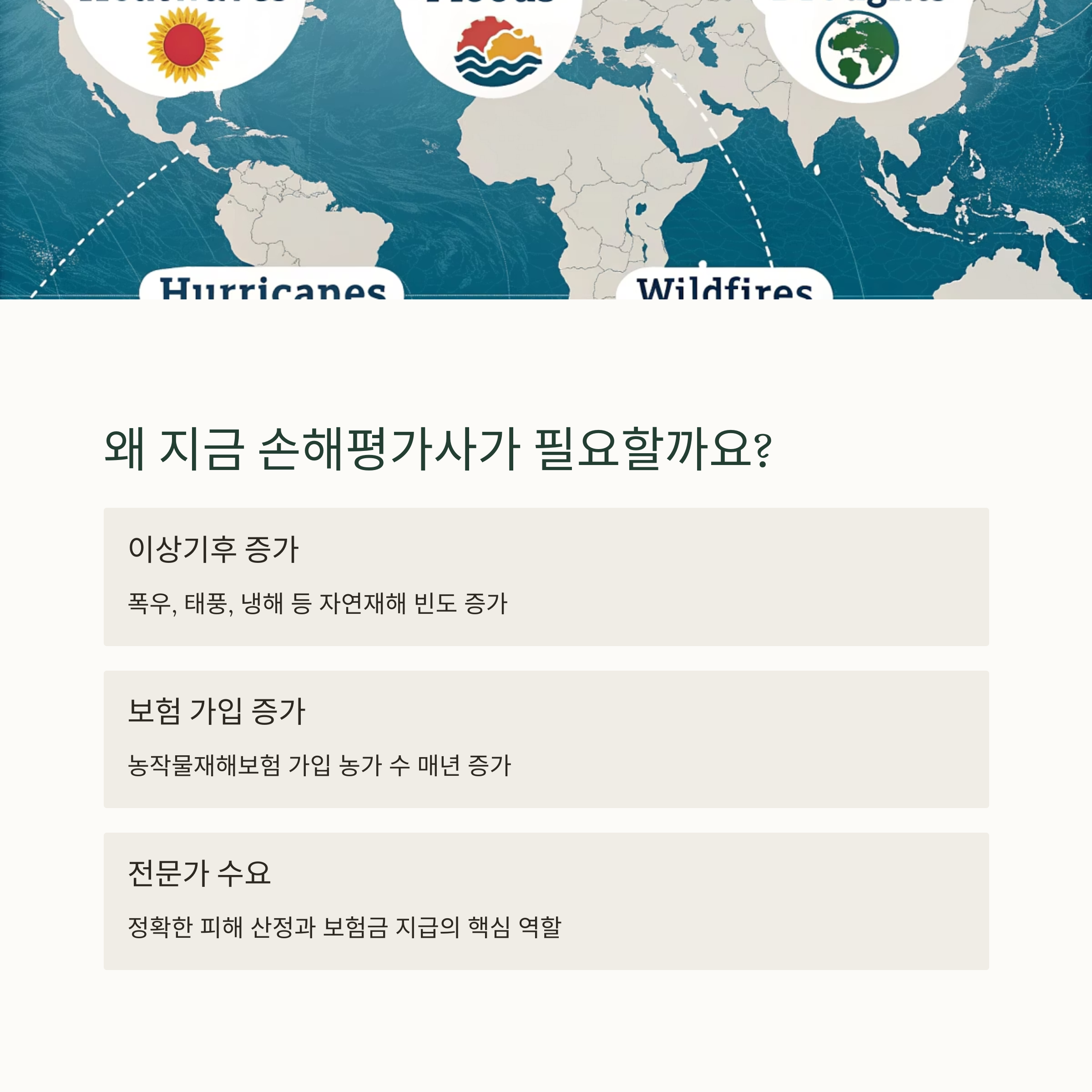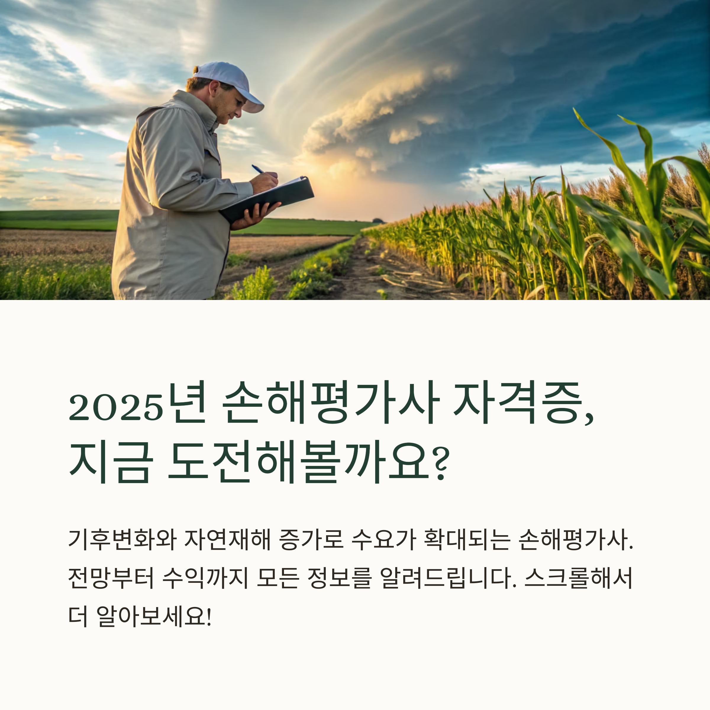 손해평가사는 단순한 자격증이 아니라 미래 농업 재해 대응의 핵심 직업군입니다.
