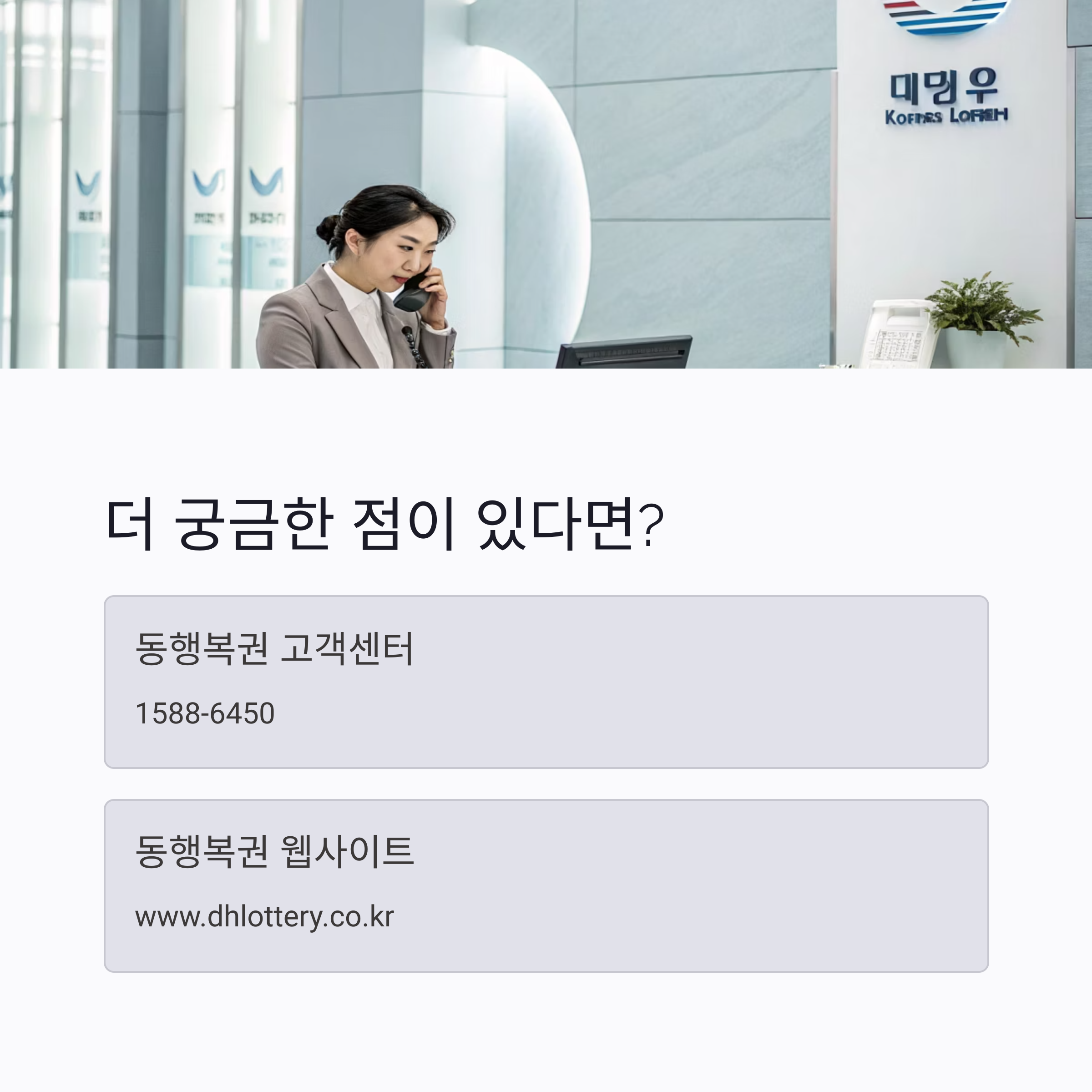 연금복권 당첨금 수령 및 세금 관련하여 더 궁금한 점이 있다면 동행복권 고객센터에 문의하시기 바랍니다.