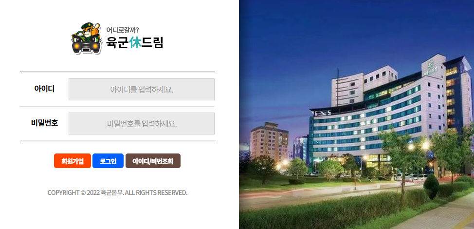 - 육군휴드림 공식 홈페이지 접속