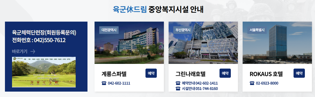| 이용 대상 | 육군 장병, 간부, 군무원, 가족 |