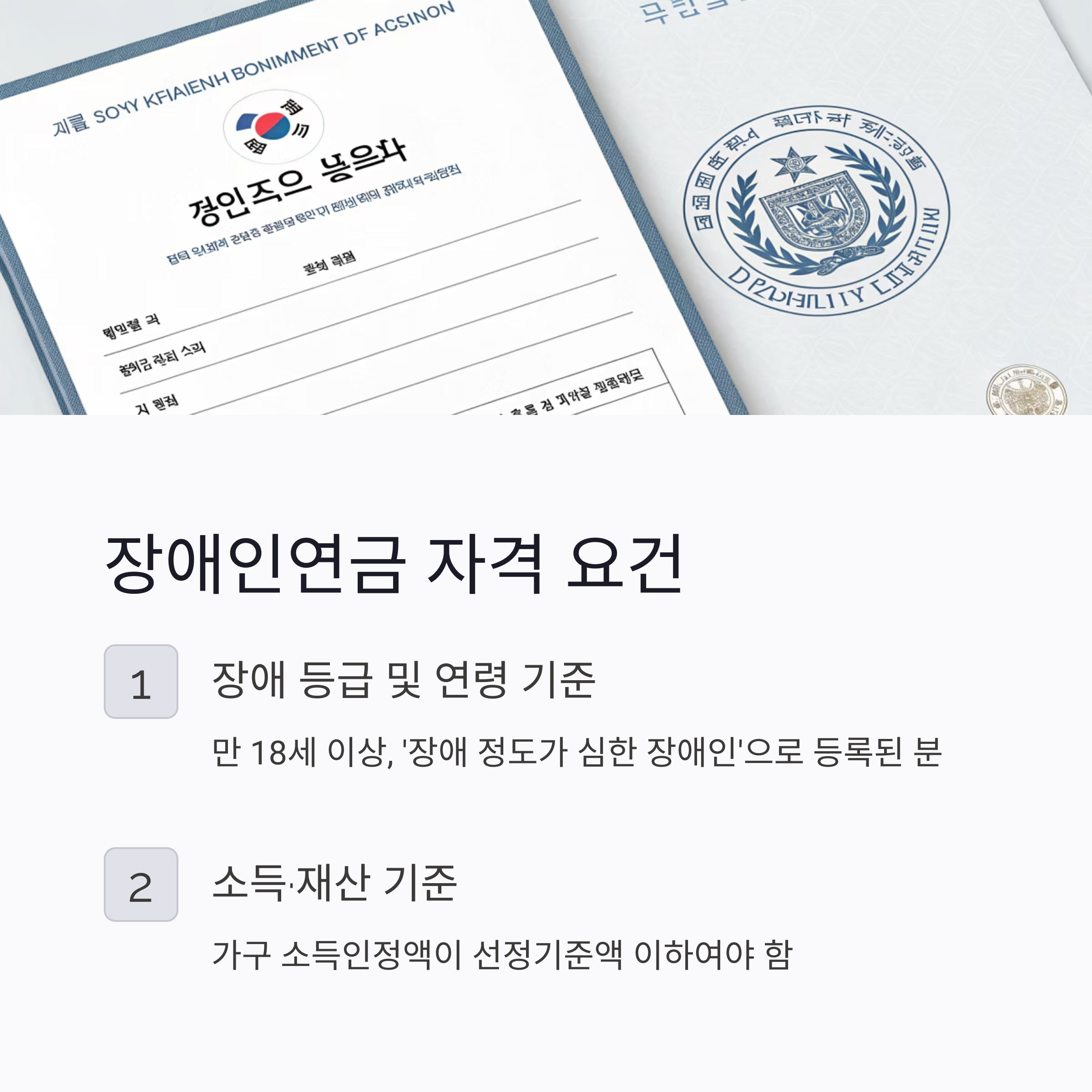 장애인연금을 받기 위해서는 다음의 세 가지 주요 요건을 모두 충족해야 합니다.