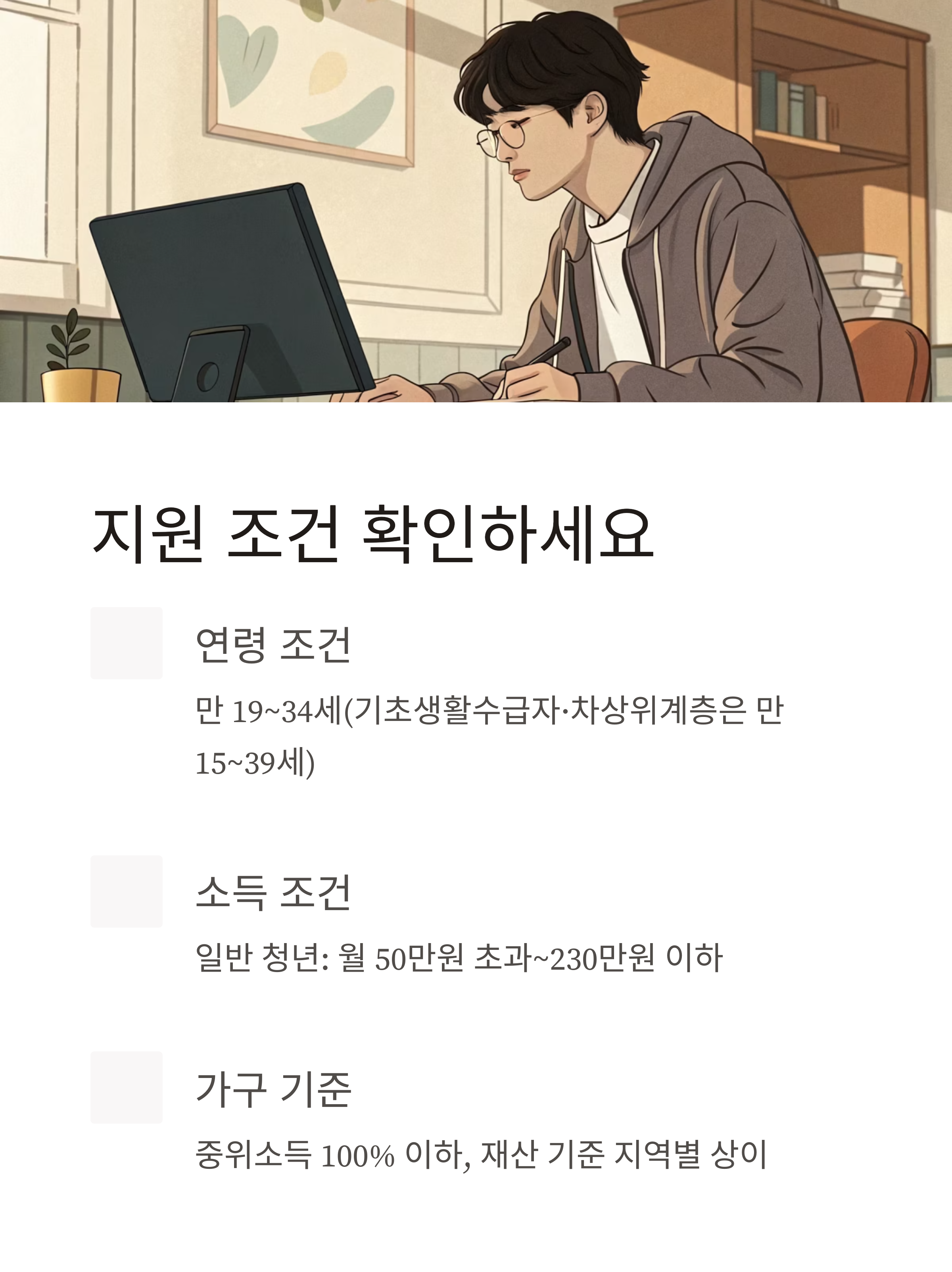 - 연령: 신청일 기준 만 19~34세(기초생활수급자·차상위계층은 만 15~39세)