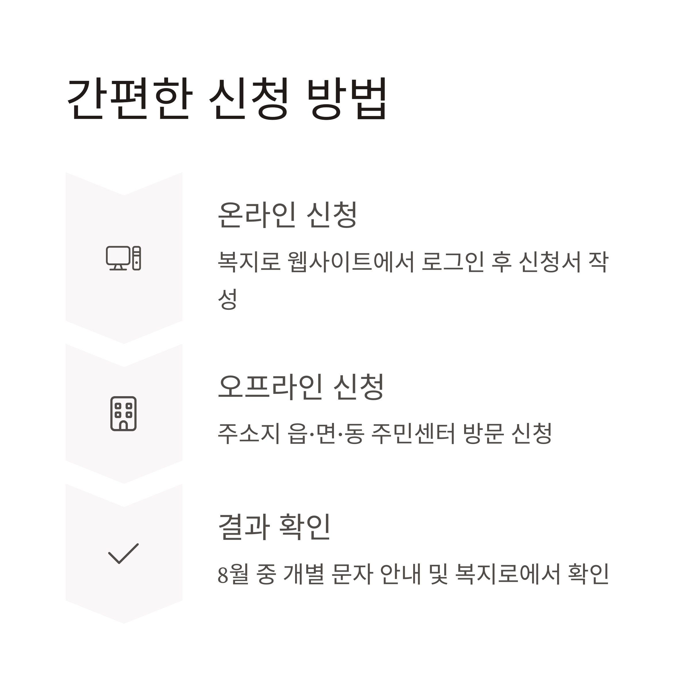 - 대상자 선정 후 8월 중 개별 문자 안내 및 복지로에서 확인 가능