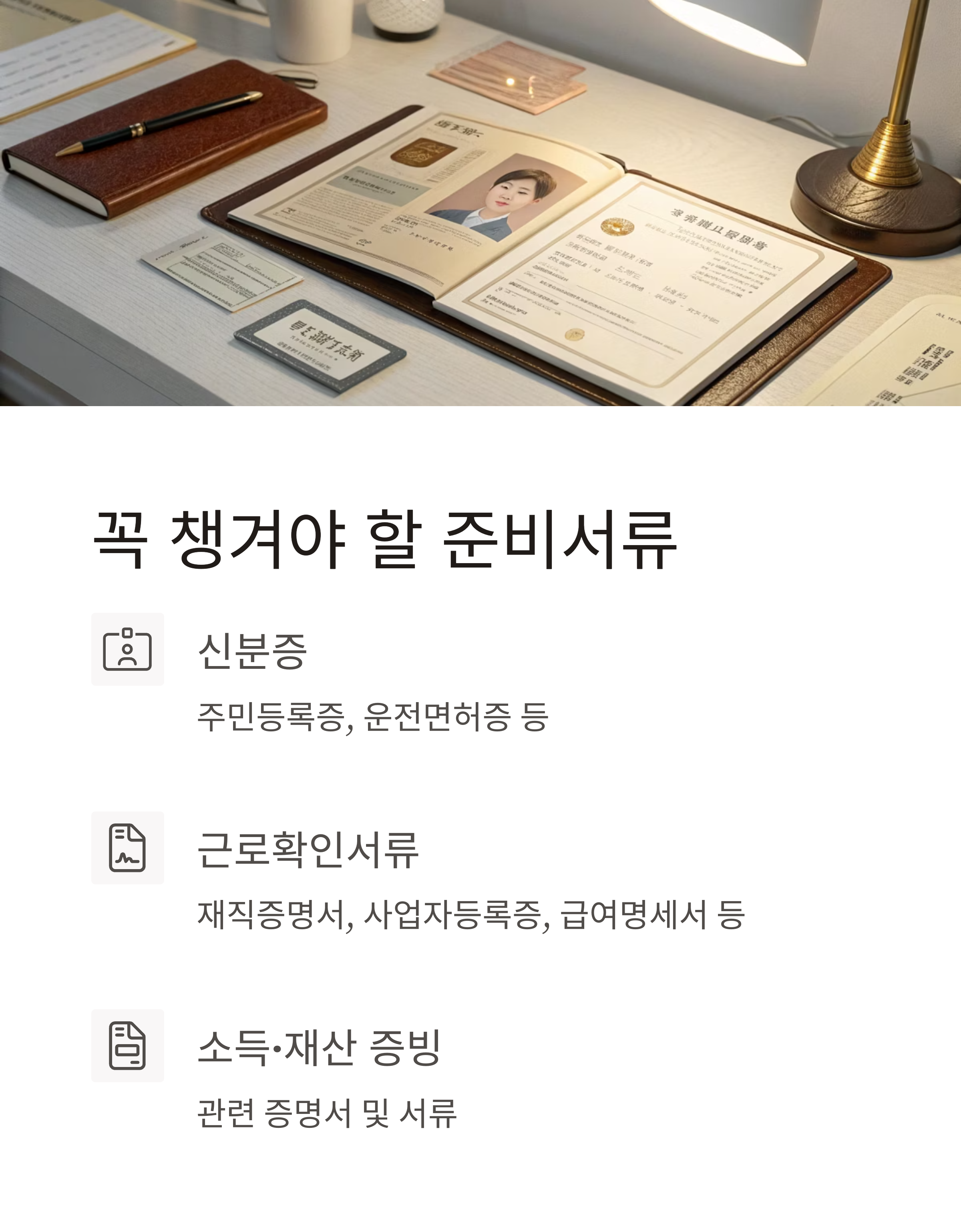 - 신분증, 참여신청서(읍면동 구비), 근로확인서류(재직증명서, 사업자등록증, 급여명세서 등), 기타 소득·재산 증빙