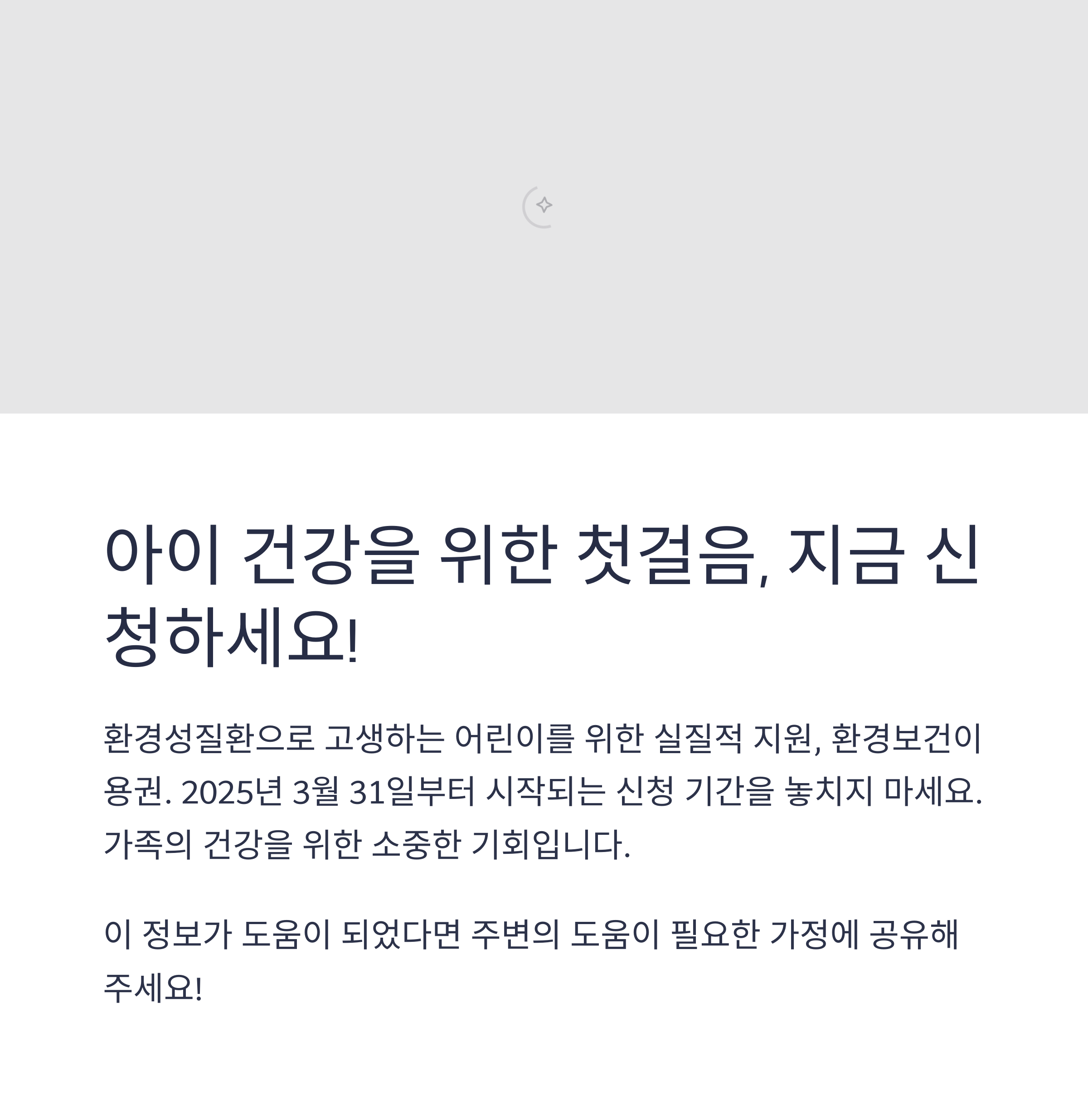 환경보건이용권은 환경성질환으로 고생하는 기초생활수급자 가정의 어린이 건강을 실질적으로 지원하는 정책입니다. 신청 기간 내 환경보건이용권 홈페이지에서 성인 보호자 명의로 간편하게 신청할 수 있으며, 포인트는 전용 온라인몰에서 상품·서비스 구매 또는 진료비 환급에 사용할 수 있습니다. 실내환경 컨설팅도 추가모집 시 중복 신청이 가능하니, 가족의 건강을 위해 꼭 신청해보세요.