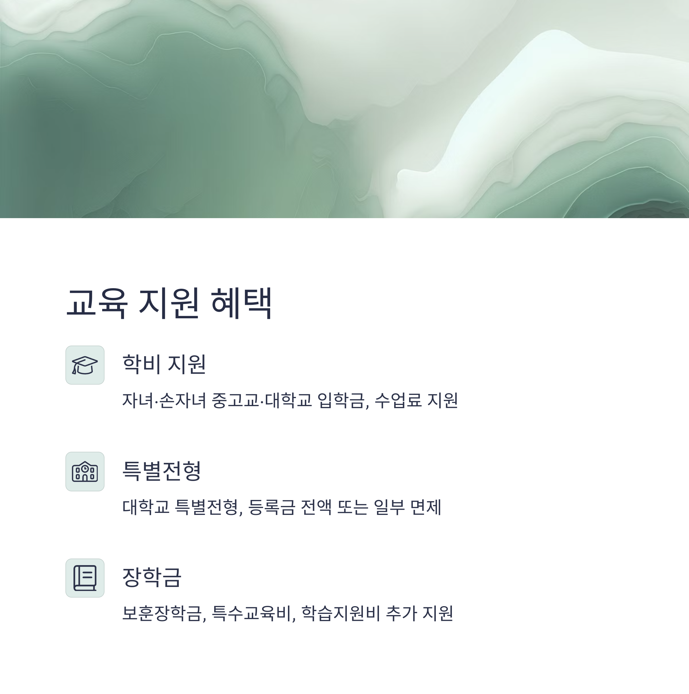 - 보훈장학금, 특수교육비, 학습지원비 등 추가 지원