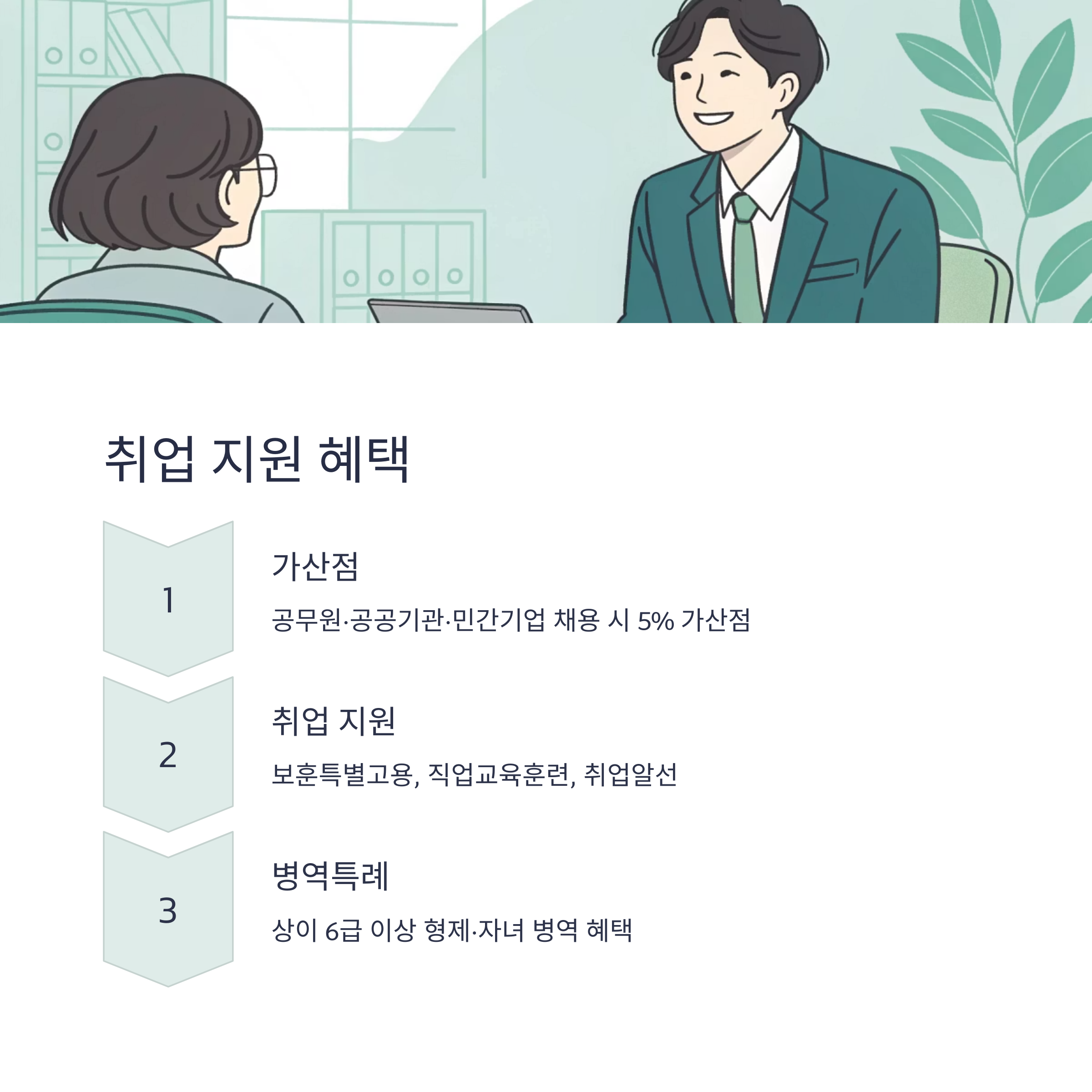 - 공무원·공공기관·민간기업 채용 시 유족(배우자·자녀) 5% 가산점 부여