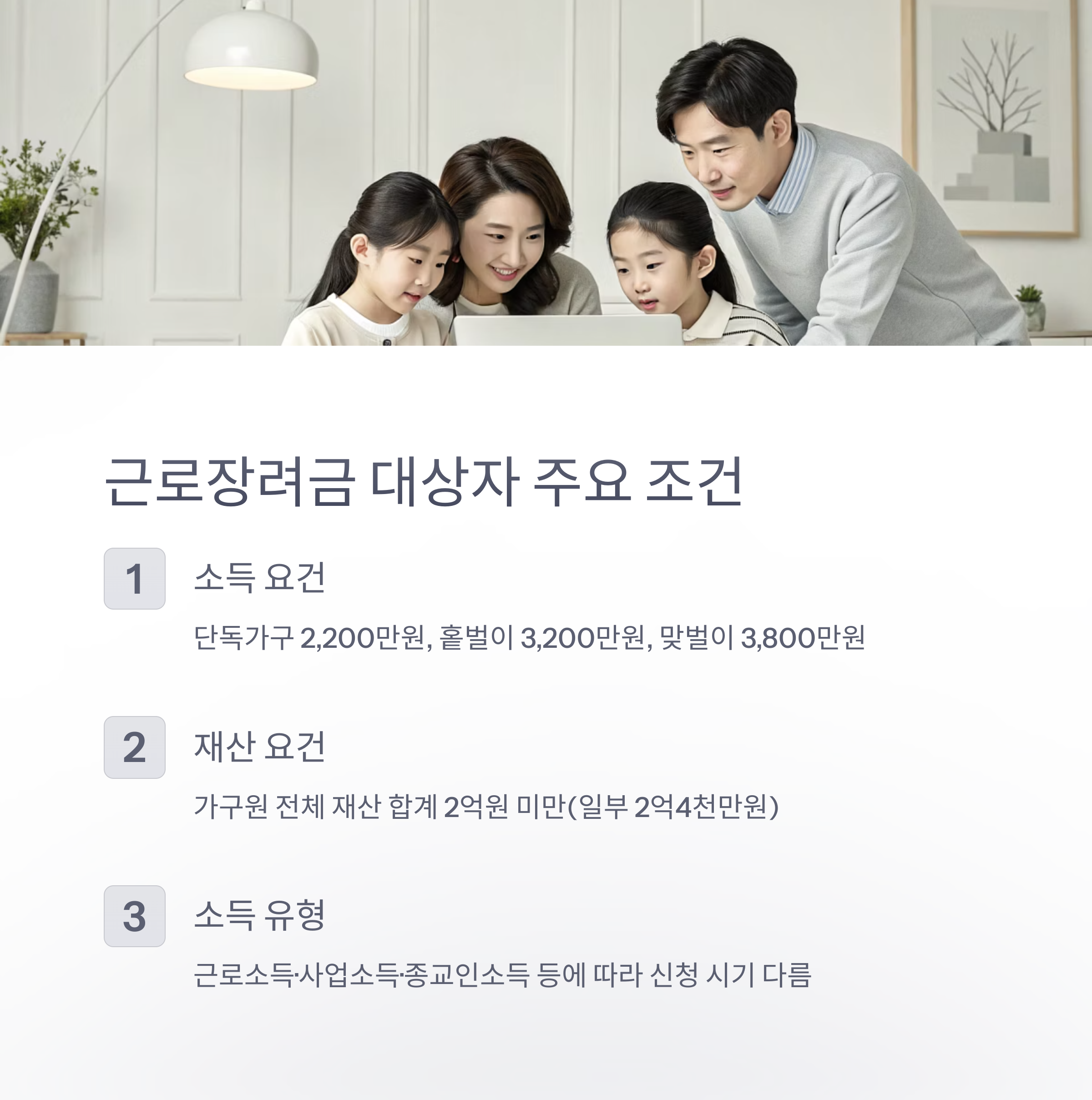 근로장려금은 소득이 낮은 근로자·사업자 가구에 정부가 현금성 지원을 제공하는 대표 복지제도입니다. 하지만 내가 실제로 대상에 해당하는지, 안내문을 받지 못했을 때도 신청이 가능한지 궁금해하는 분들이 많습니다. 아래에서 근로장려금 대상자 확인 방법, 주요 조건, 확인 경로, 주의사항까지 한눈에 정리합니다.