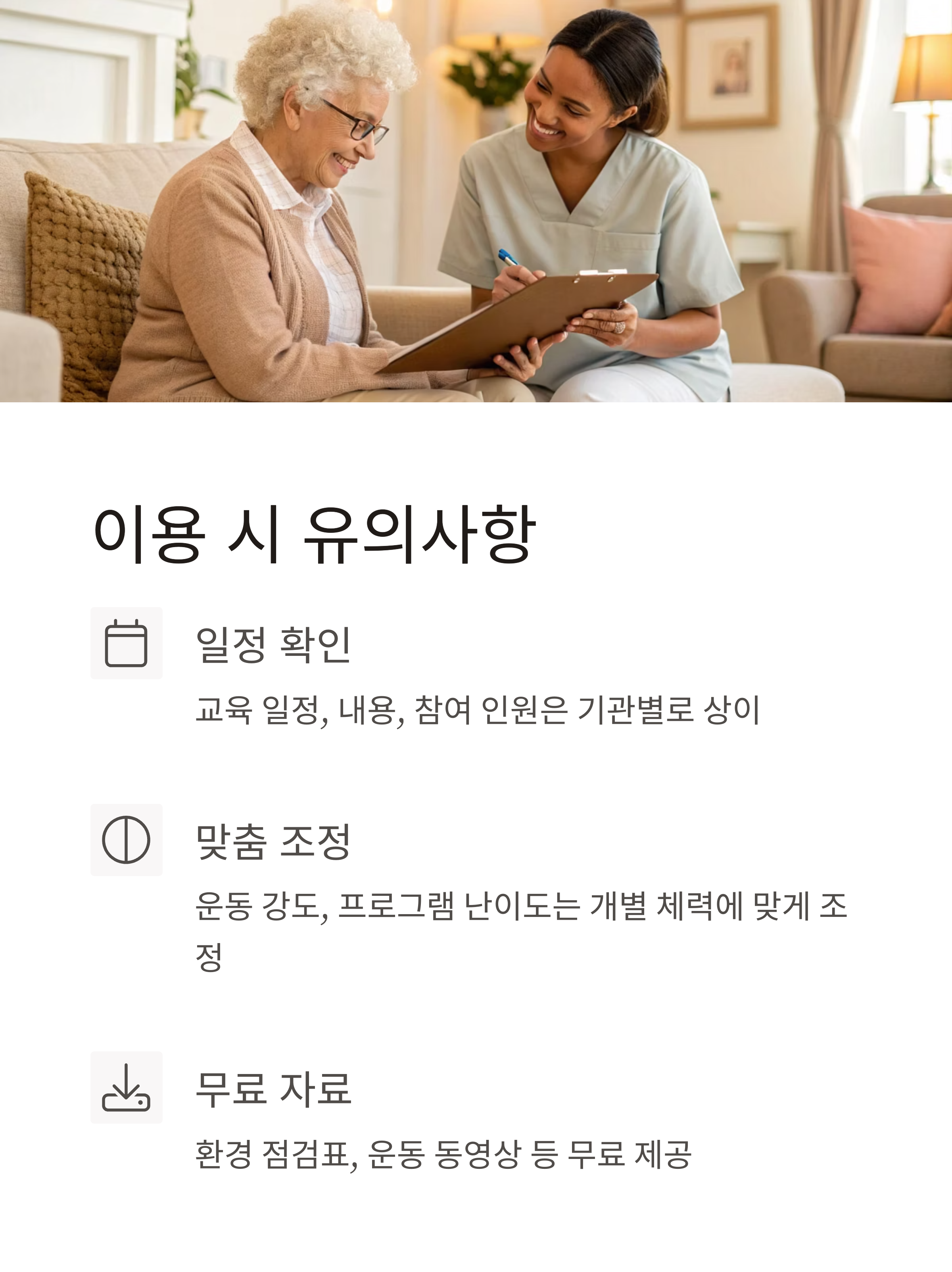 - 교육 후 실내 환경 개선, 보조용품 지원 등 연계 서비스도 안내
