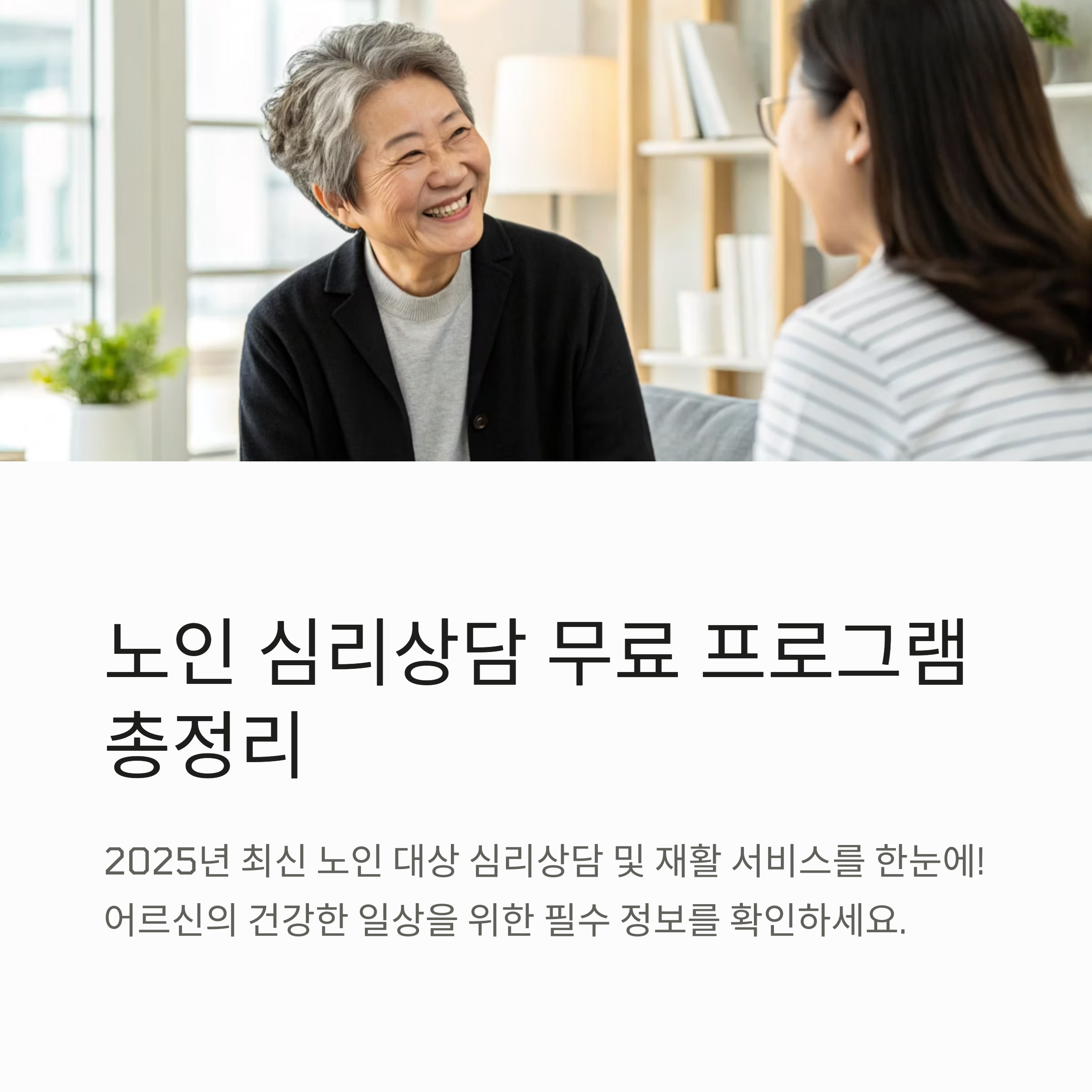 노인을 위한 심리상담은 정서적 안정과 사회적 지원 제공에 초점을 맞춥니다.