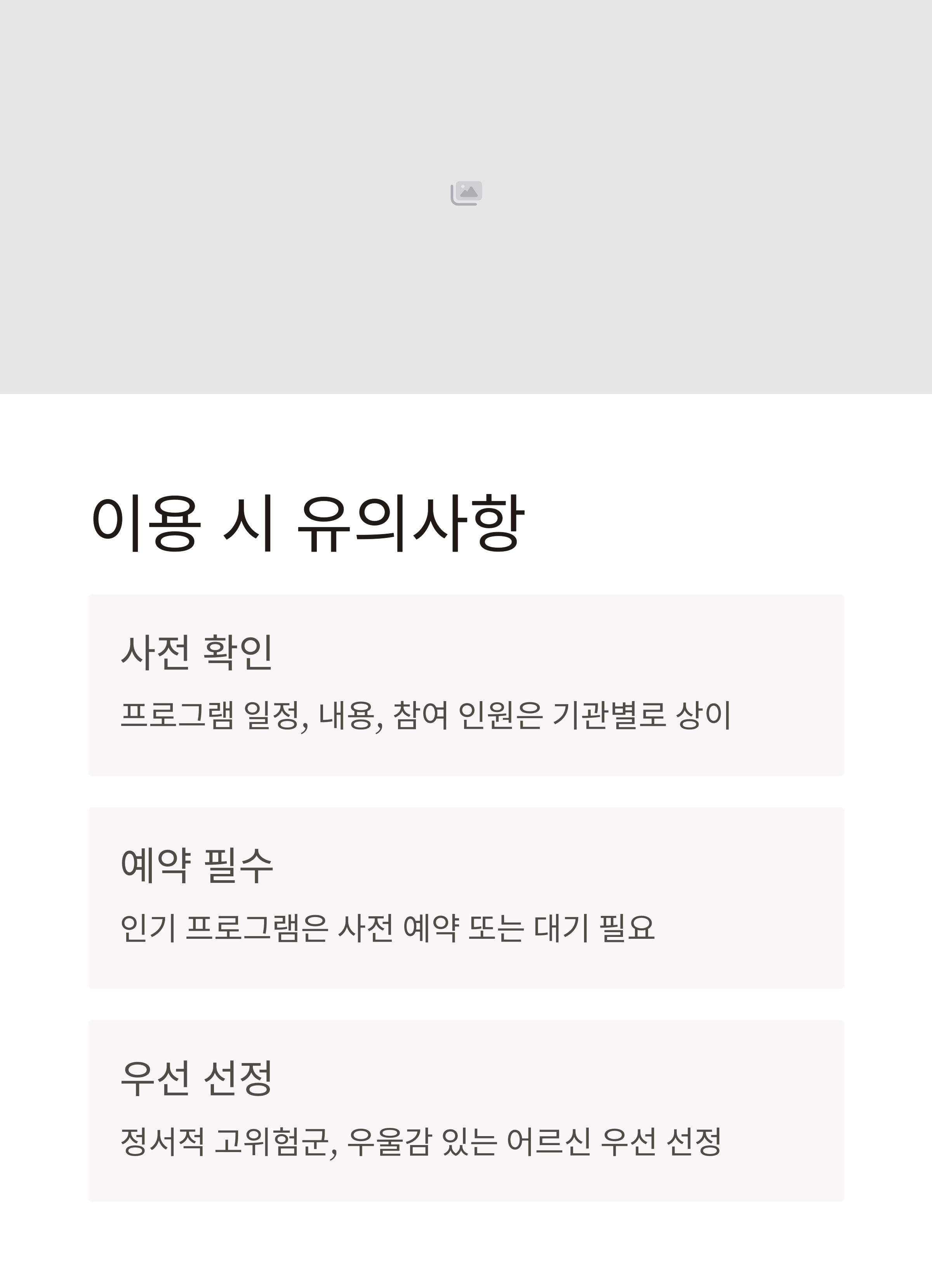 - 일부 인기 프로그램은 사전 예약 또는 대기 필요