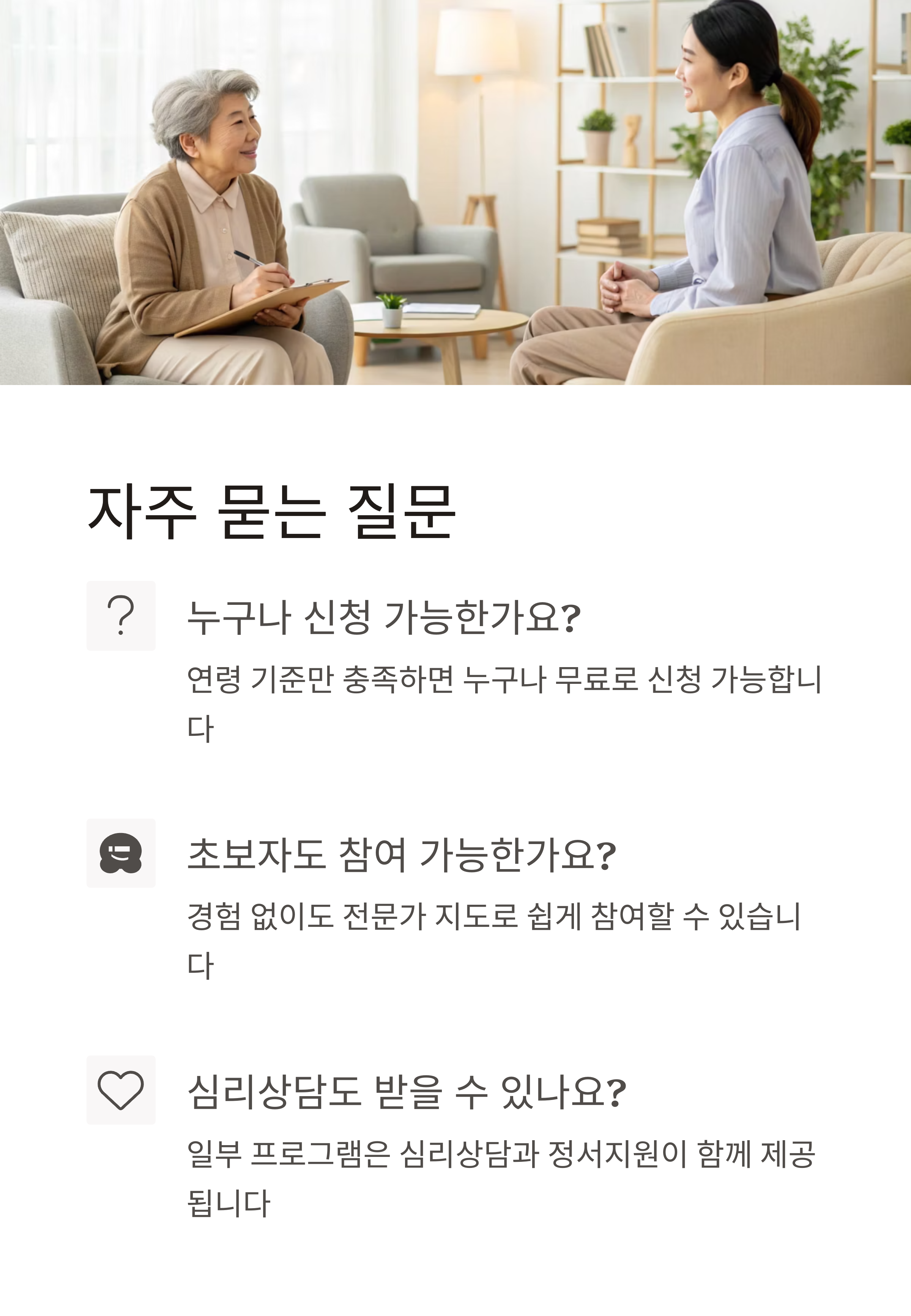 - 참여 제한 없음: 대부분 프로그램은 연령 기준만 충족하면 누구나 참여 가능