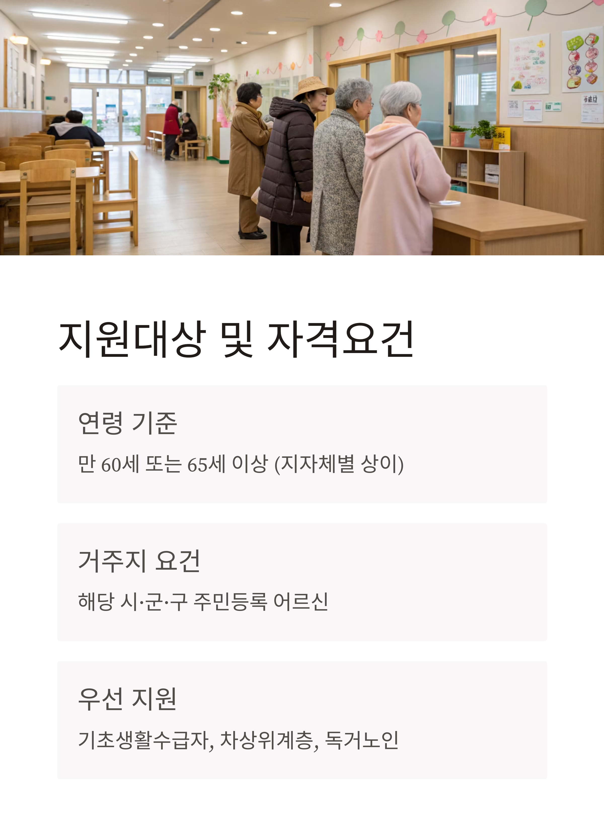 - 연령 기준: 만 60세 또는 65세 이상(지자체별 상이)