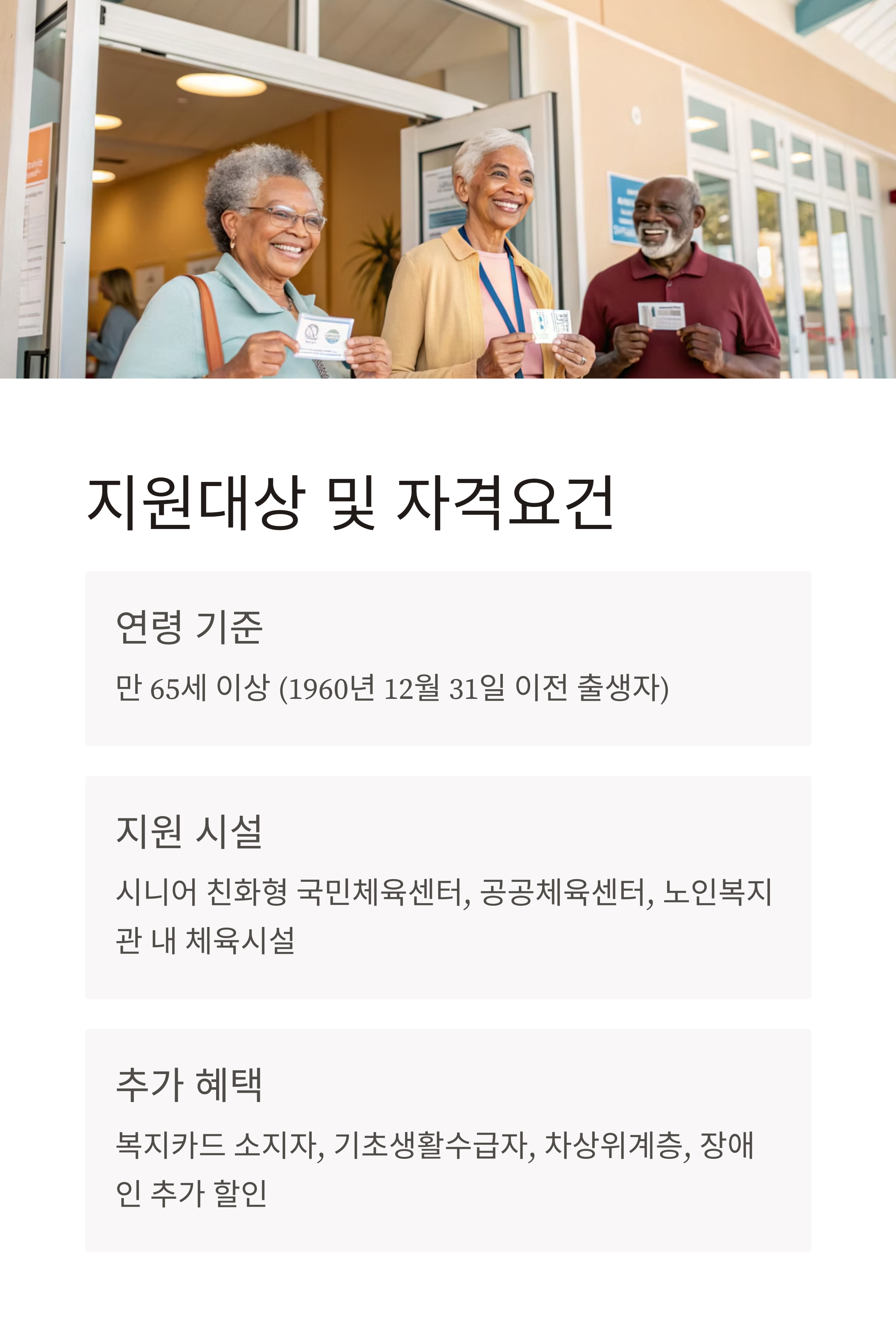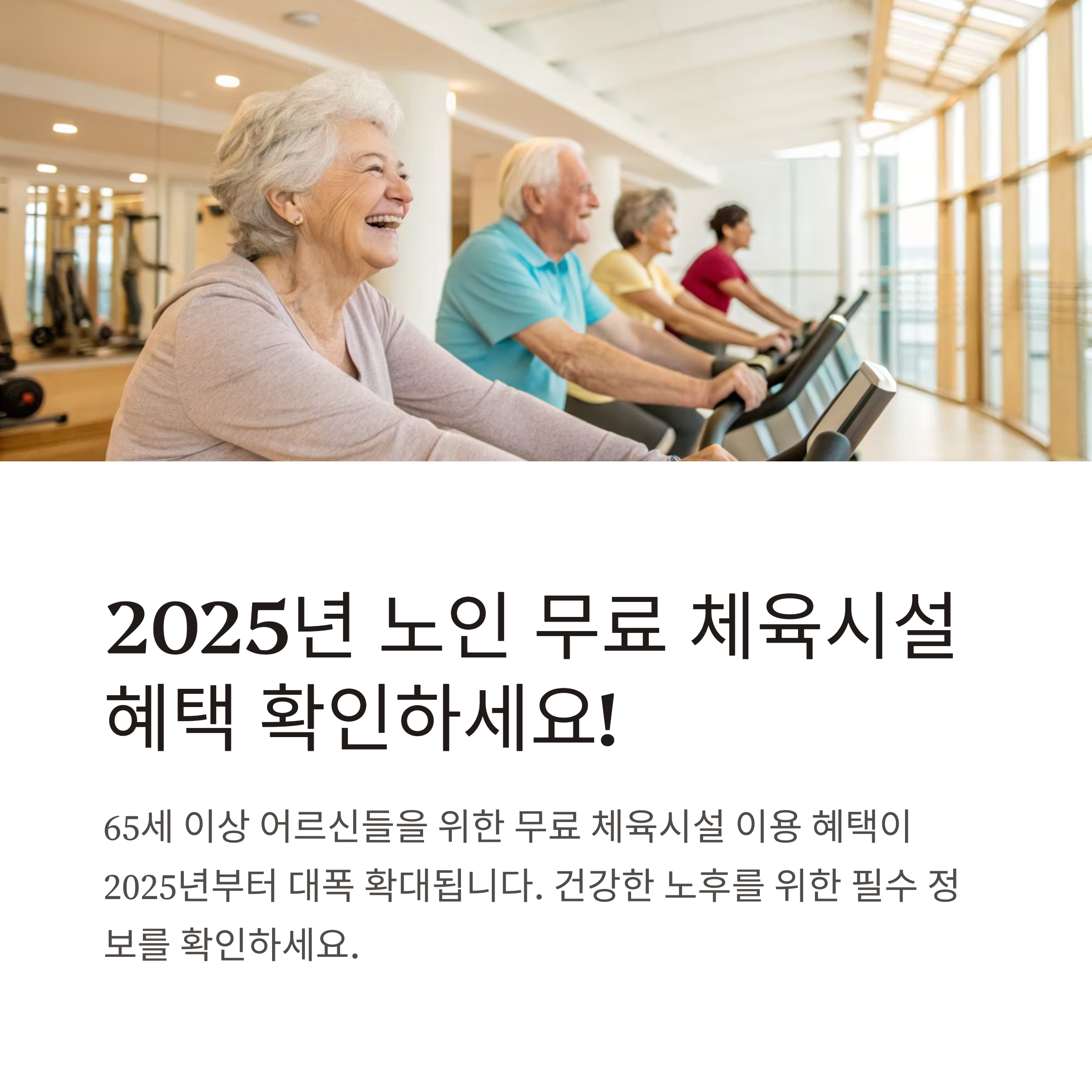 건강한 노후를 위해 운동은 필수입니다. 정부와 각 지자체는 2025년부터 65세 이상 어르신들이 더 쉽고 편리하게 다양한 체육시설을 무료 또는 할인된 가격으로 이용할 수 있도록 지원을 대폭 확대했습니다. 시니어 친화형 국민체육센터 확충, 복지카드 할인, 복지관 프로그램 등 다양한 경로로 체육활동을 누릴 수 있습니다. 아래에서 지원대상, 주요 혜택, 신청 방법, 주의사항 등 꼭 필요한 정보를 꼼꼼하게 안내합니다.