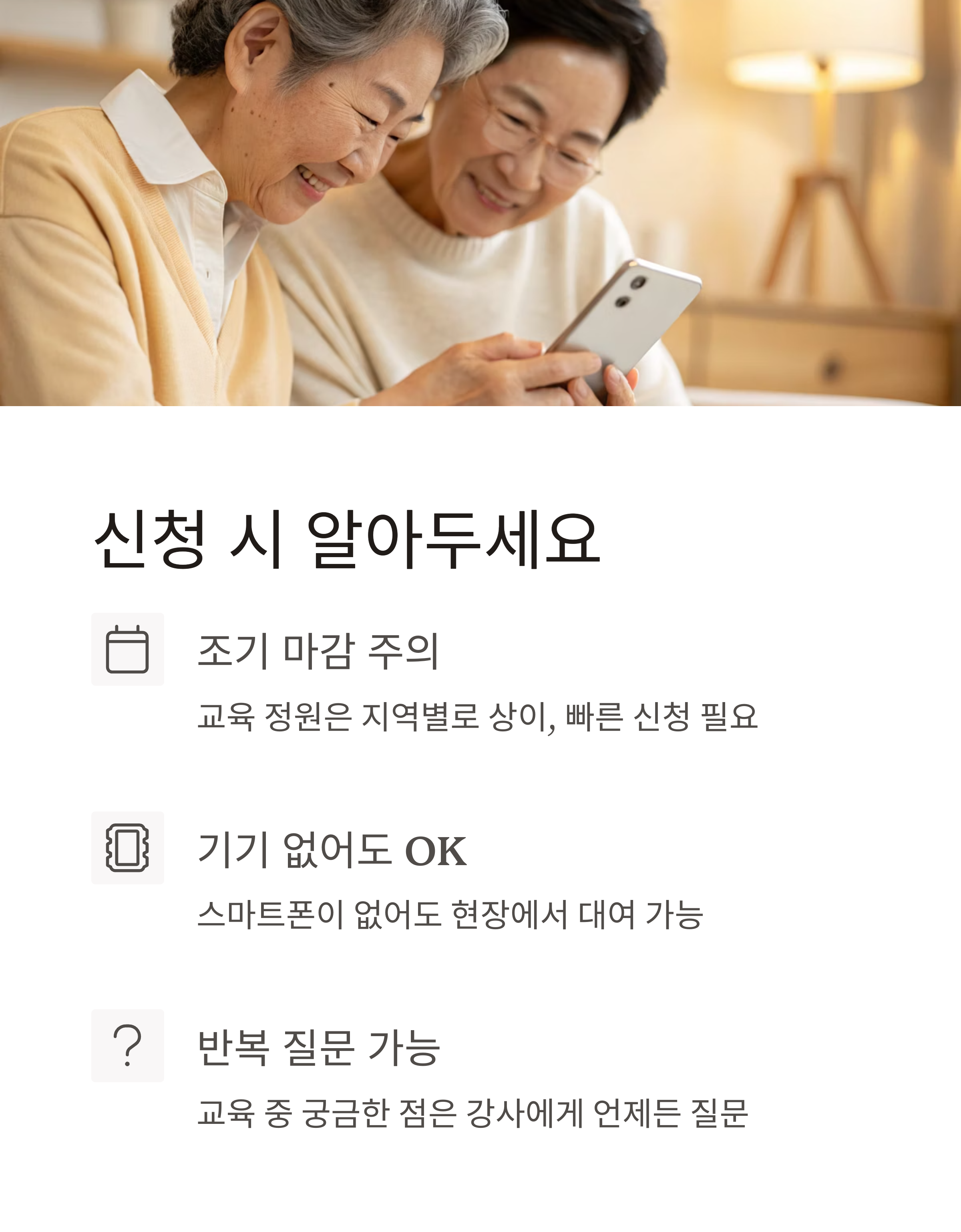 - 55세 이상 어르신 대상 1:1 스마트폰 무료 방문 교육