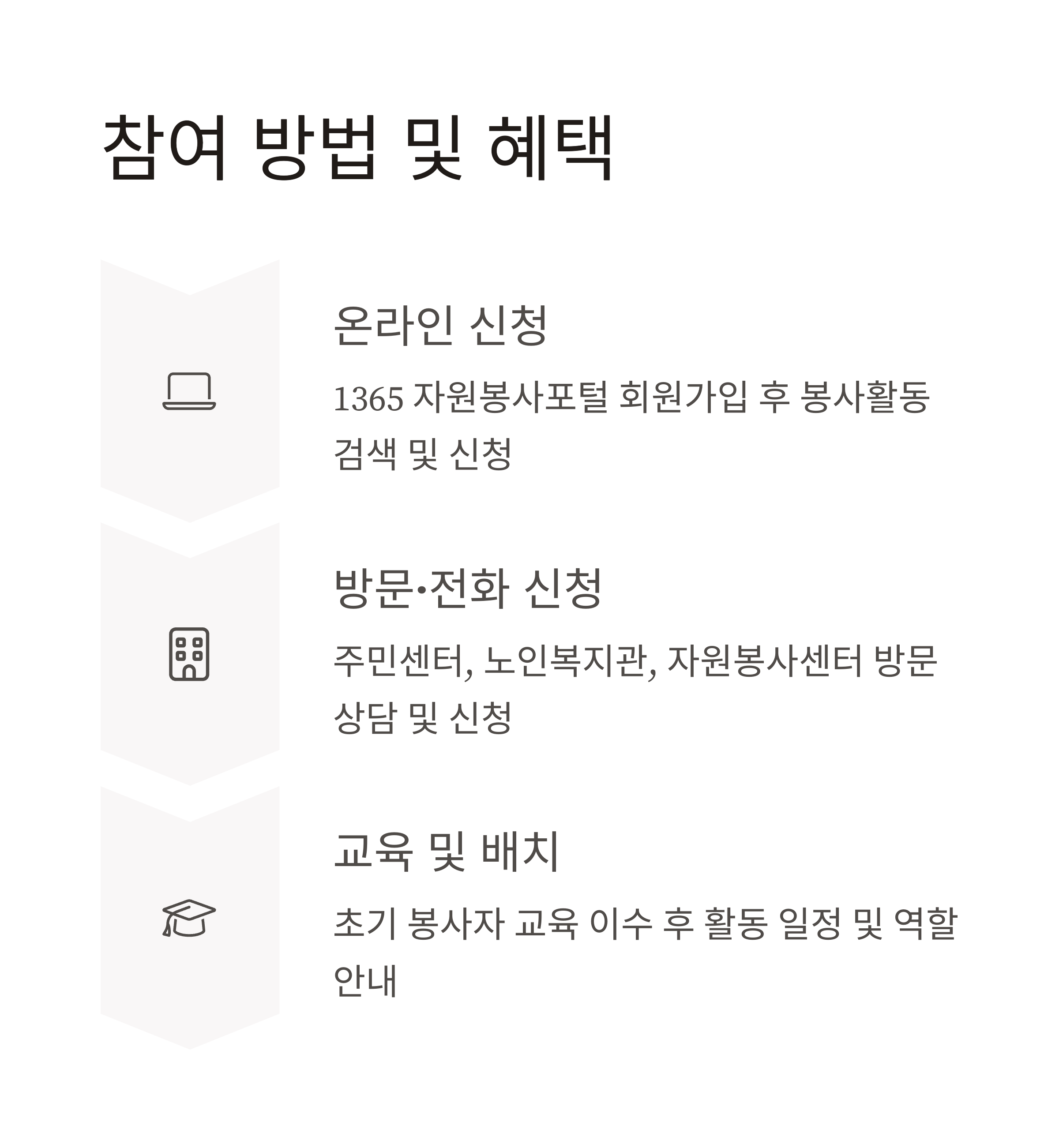 - 거주지 주민센터, 노인복지관, 자원봉사센터 방문