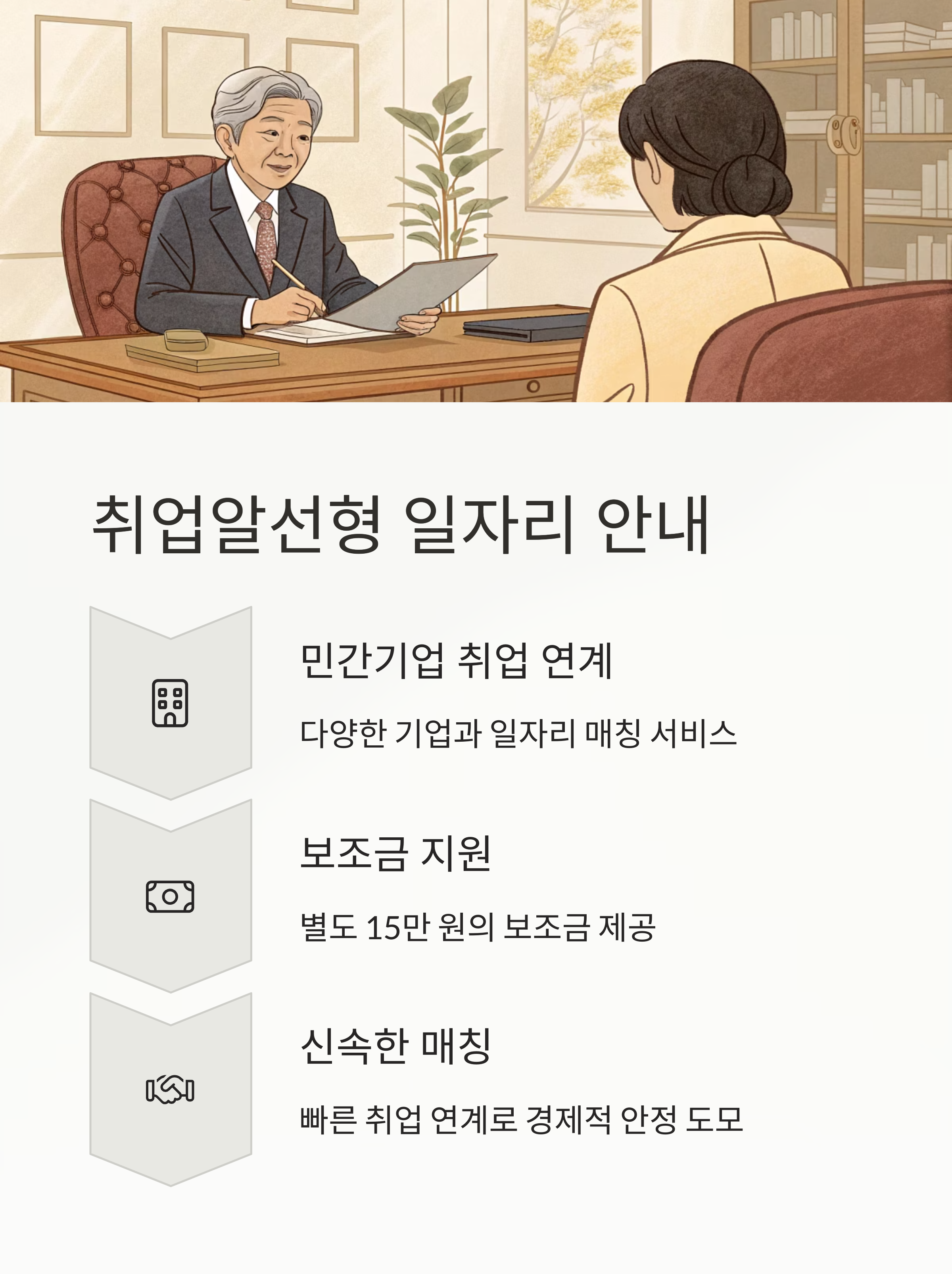 반면 취업알선형은 민간기업 취업을 연계해 일자리 선택의 폭을 넓힙니다.