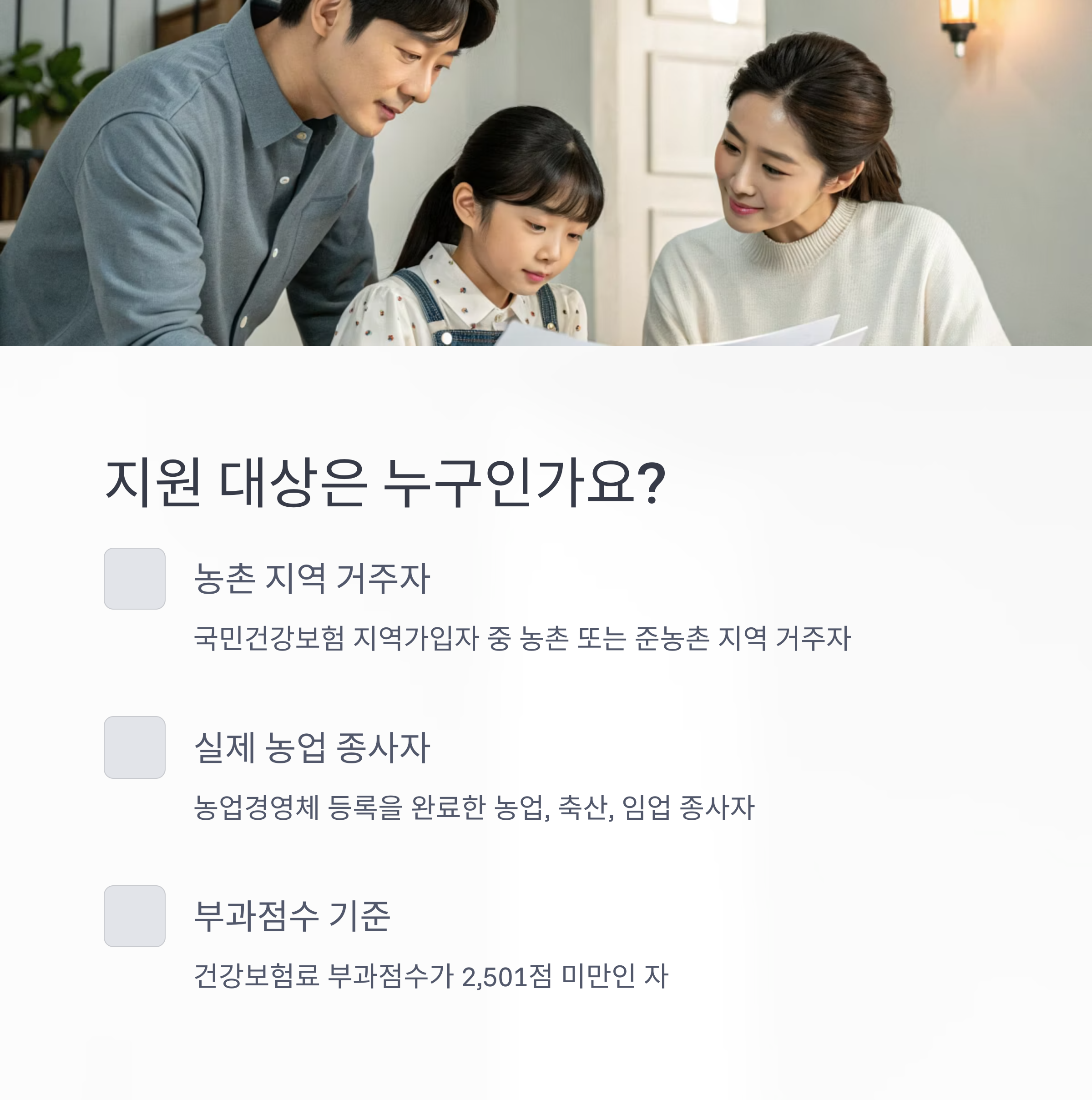 - 직장가입자, 농업법인 임직원 등은 지원 대상에서 제외