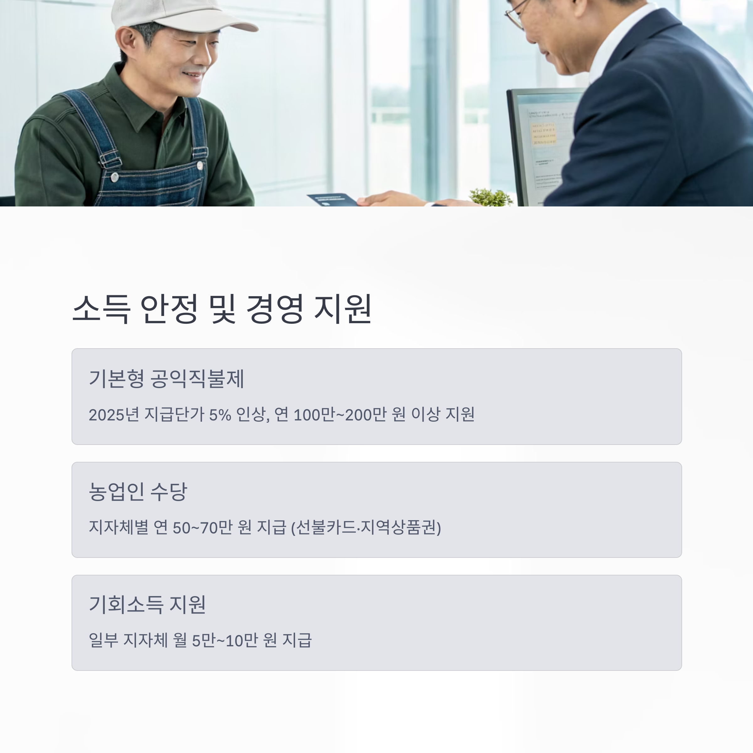 1. 소득 안정 및 경영 지원