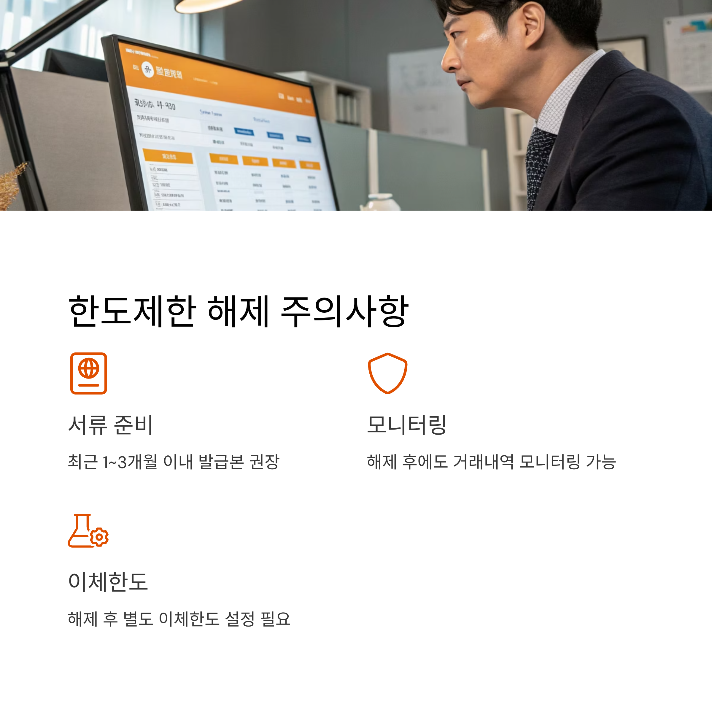 - 해제 후에도 금융사기 예방을 위해 거래내역이 모니터링될 수 있음