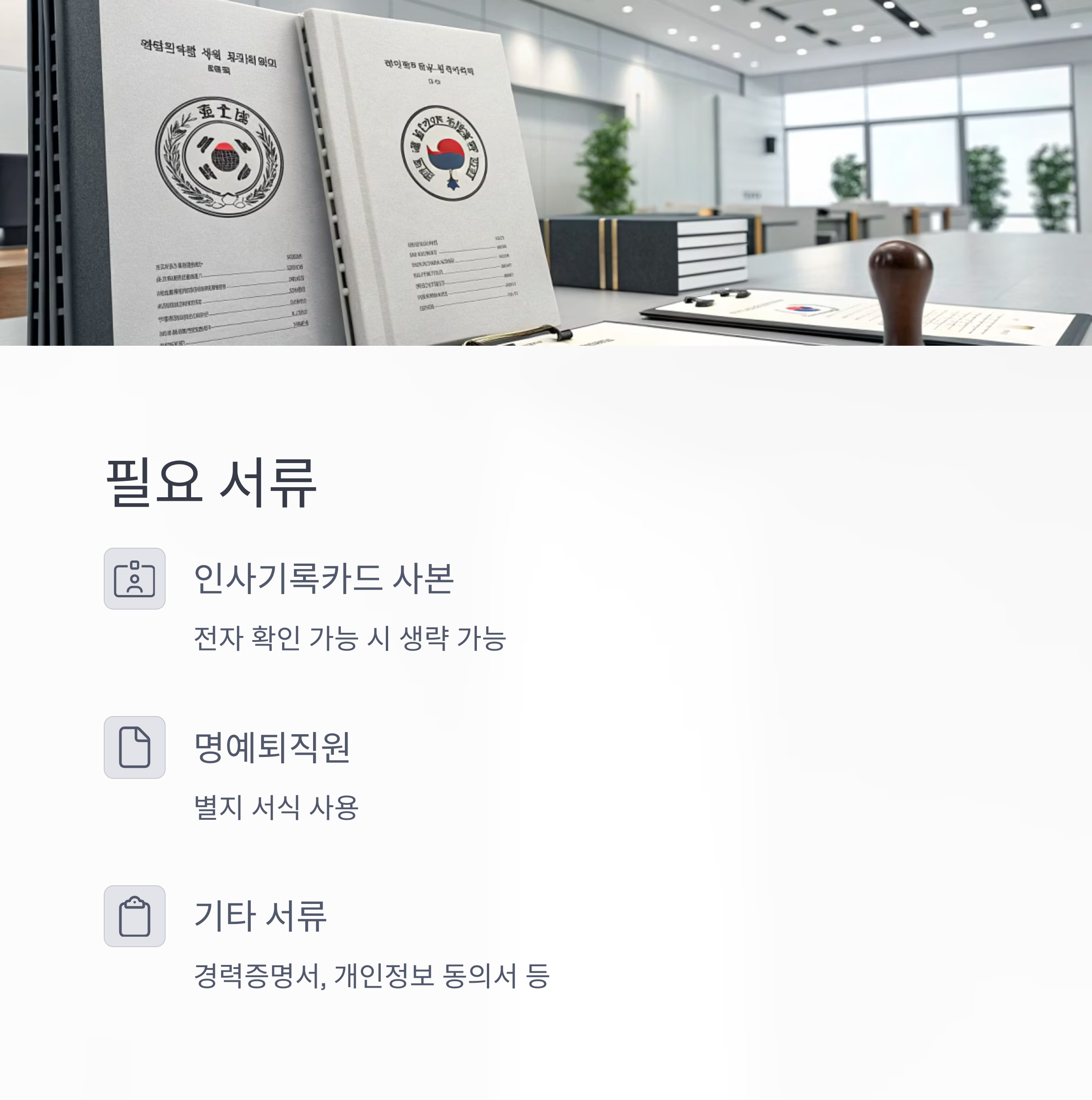 - 인사기록카드 사본(전자 확인 가능 시 생략)