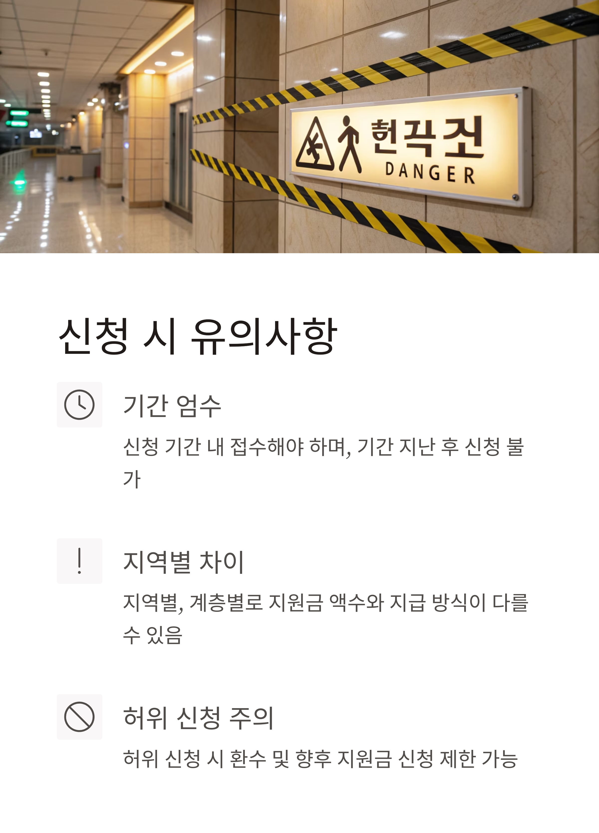 - 지역별, 계층별로 지원금 액수와 지급 방식이 다를 수 있으니 반드시 공고문 확인