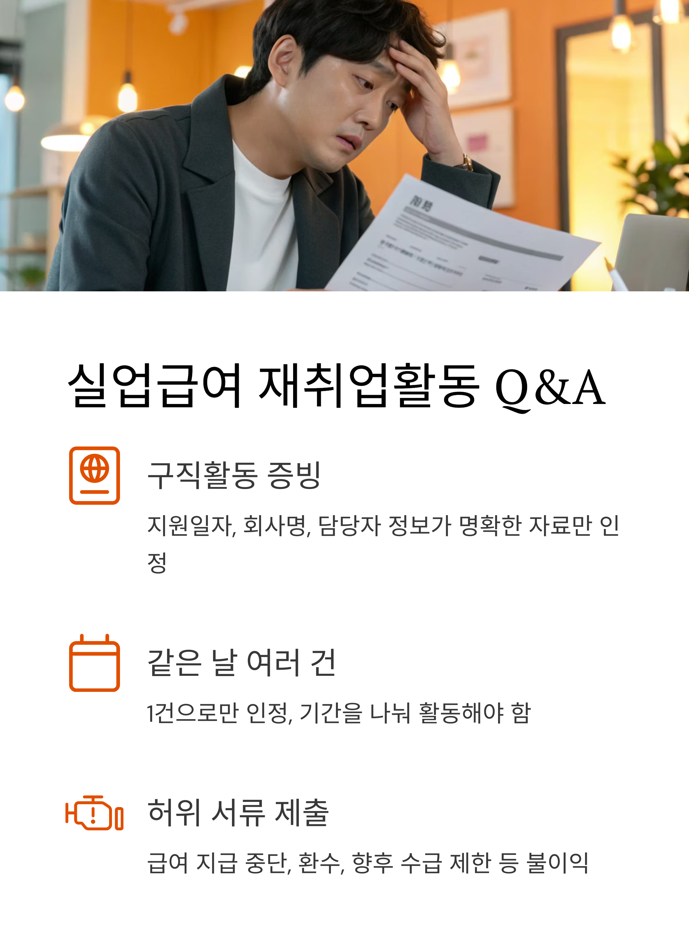 2차부터는 구직활동만 인정되며, 구직 외 활동은 불가합니다. - Q. 허위로 서류를 제출하면?