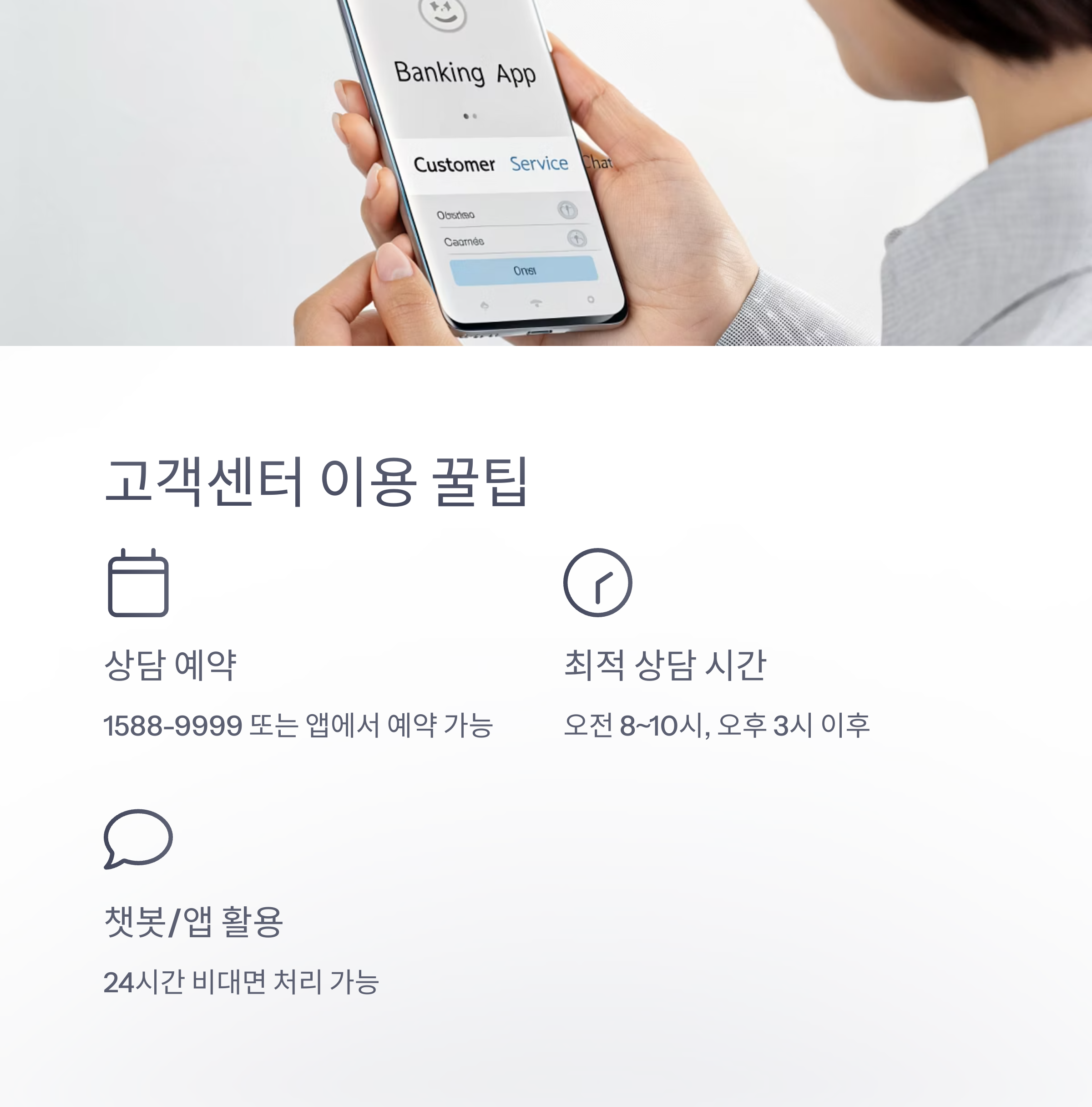 - 챗봇/앱 활용: 잔액조회, 이체, 간단 문의는 24시간 비대면 처리