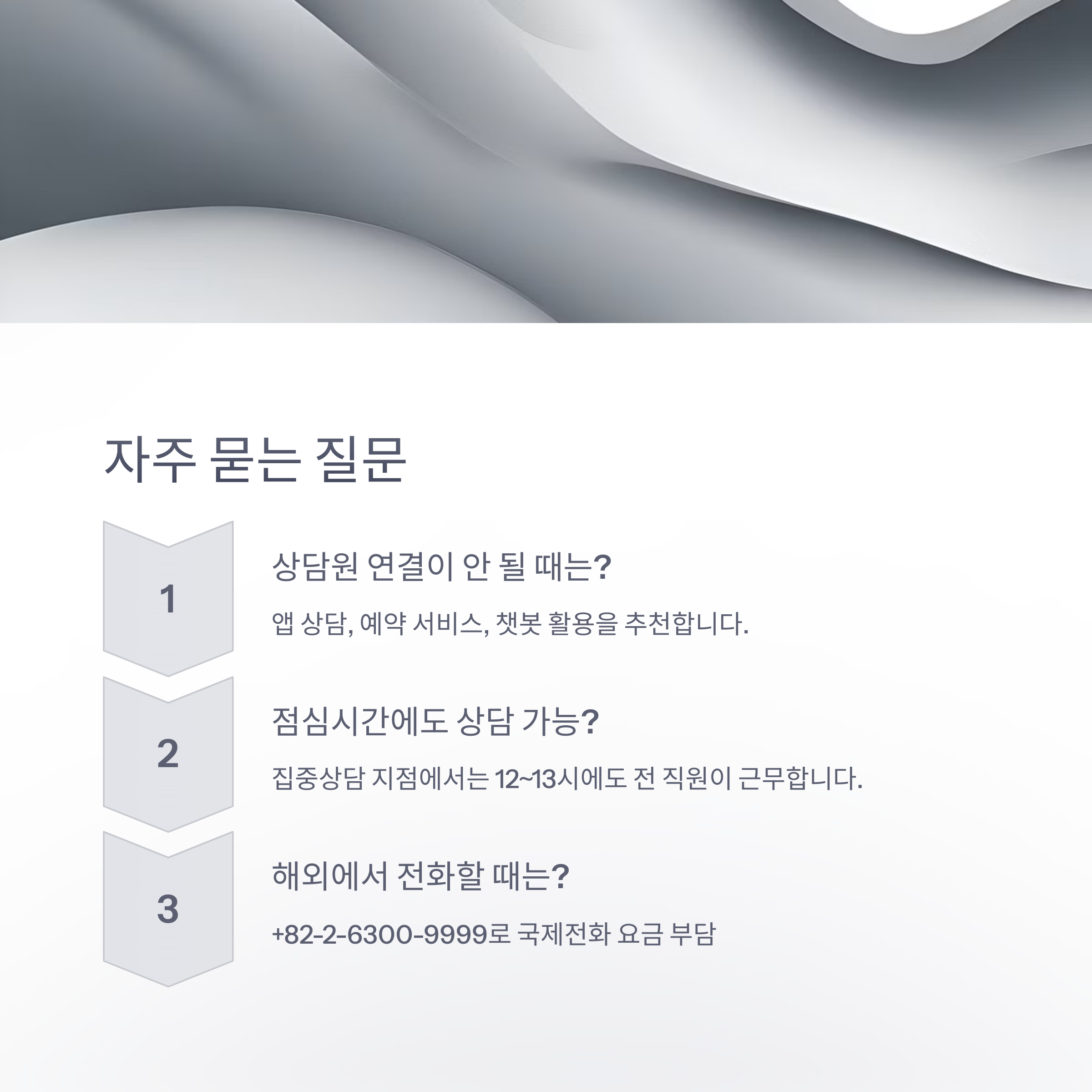 - 최적 상담 시간: 오전 8~10시, 오후 3시 이후(월·금 혼잡, 화~목 추천)