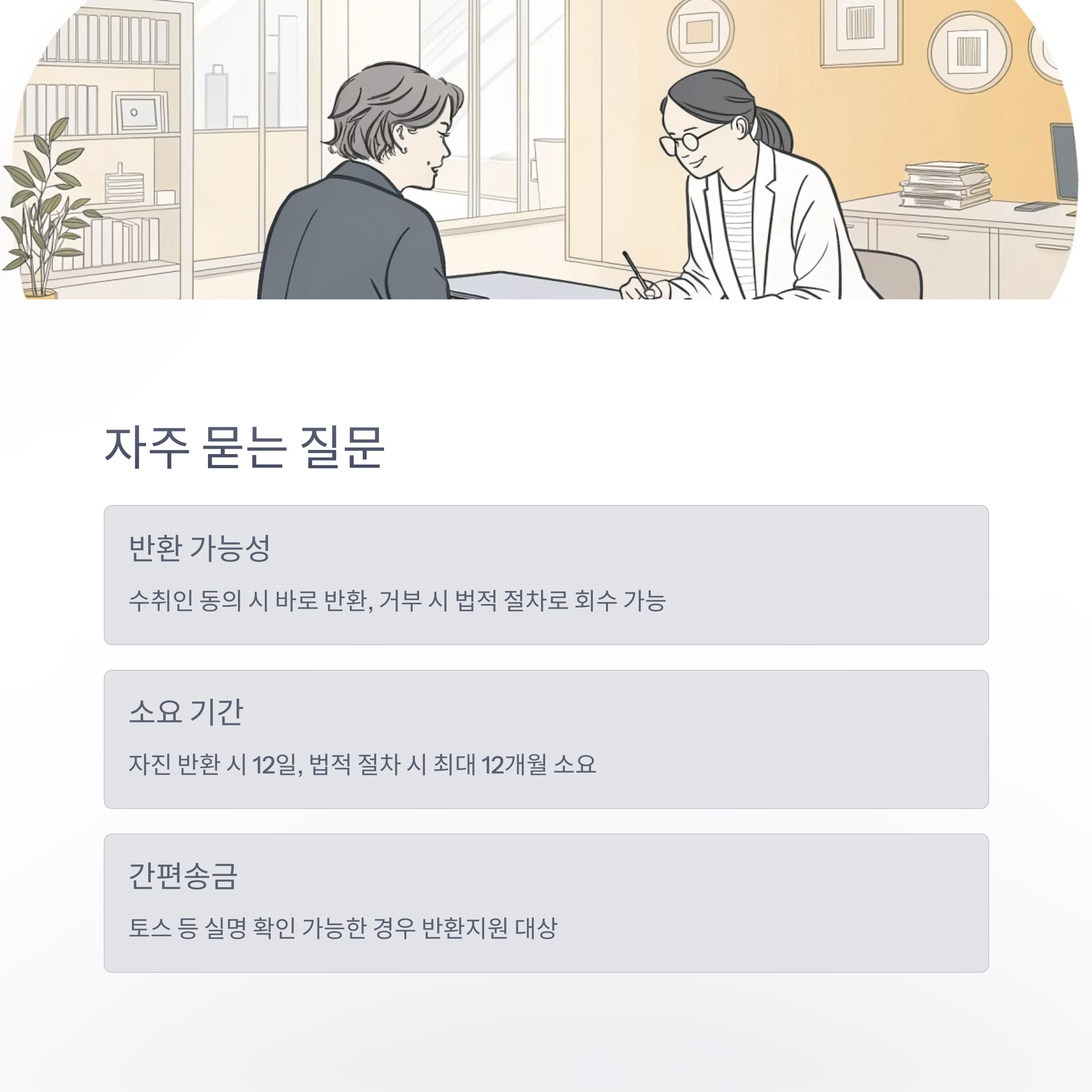수취인 동의 시 바로 반환, 거부 시 예금보험공사 반환지원제도(법원 지급명령 등) 절차로 회수 가능성이 높아졌습니다. - Q. 반환까지 얼마나 걸리나요?