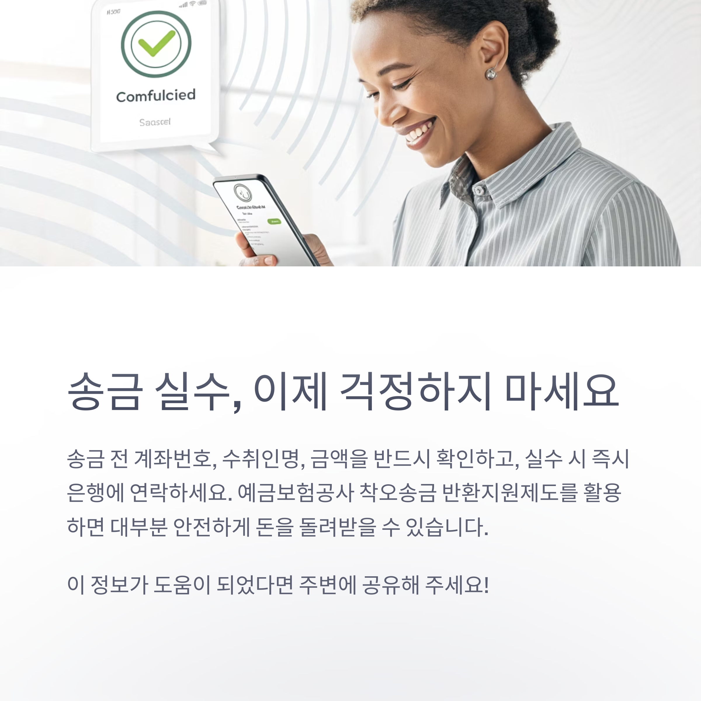 - 송금 전 계좌번호, 금액, 수취인명 반드시 재확인