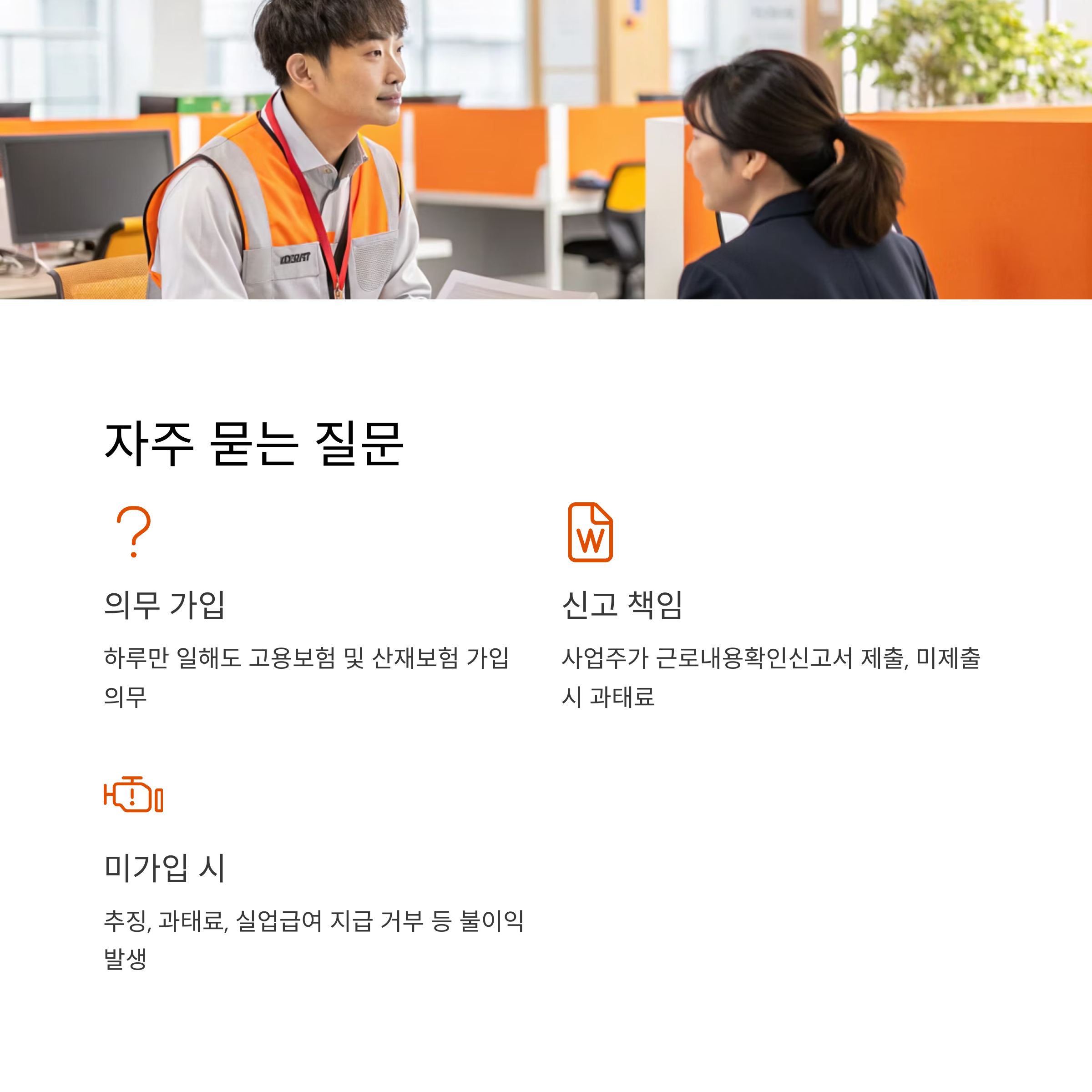 네, 하루만 일해도 고용보험 및 산재보험 가입이 의무입니다. - Q. 국민연금·건강보험은 언제 가입하나요?