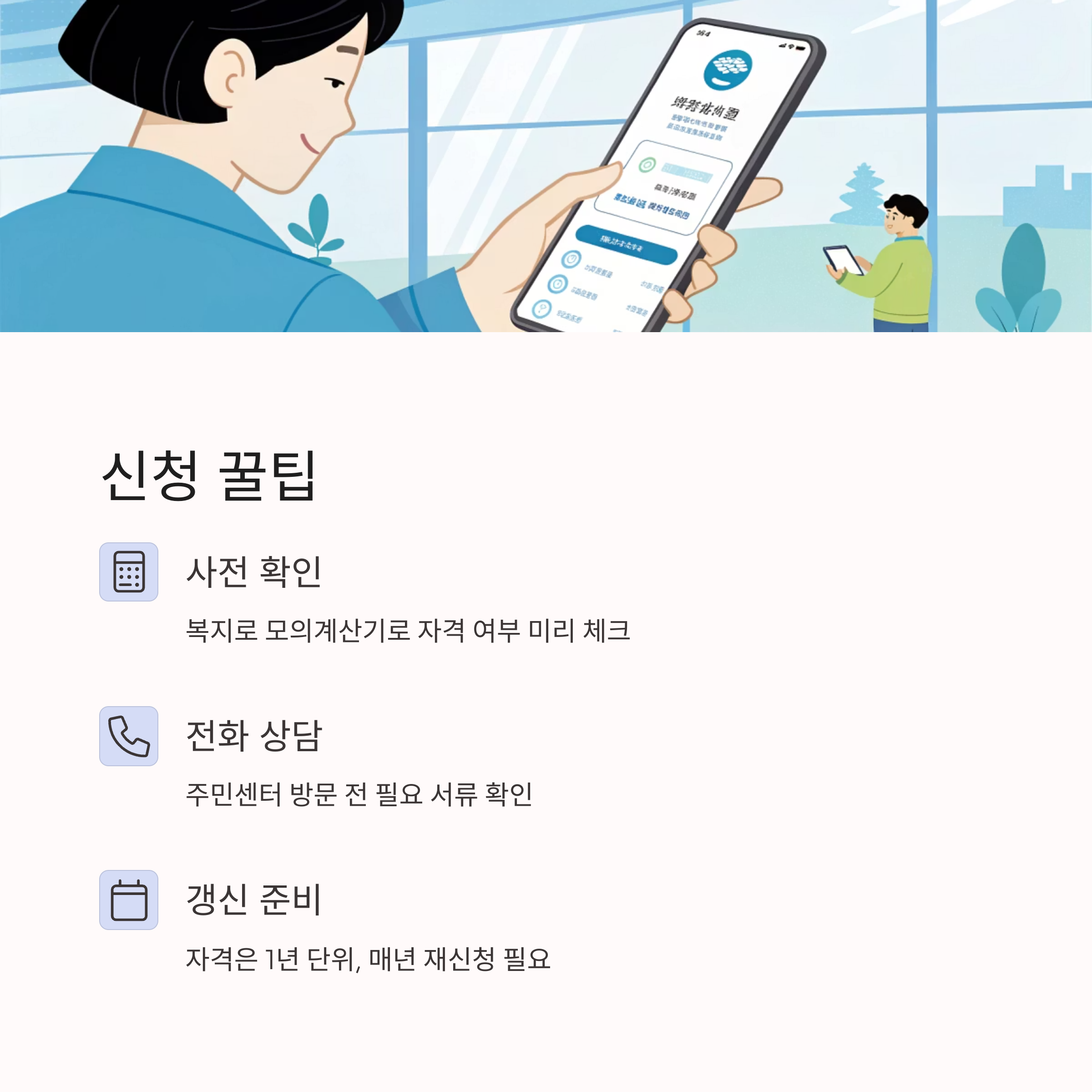 - 주민센터 방문 전 전화 상담으로 서류 준비 철저(반복 방문 방지)