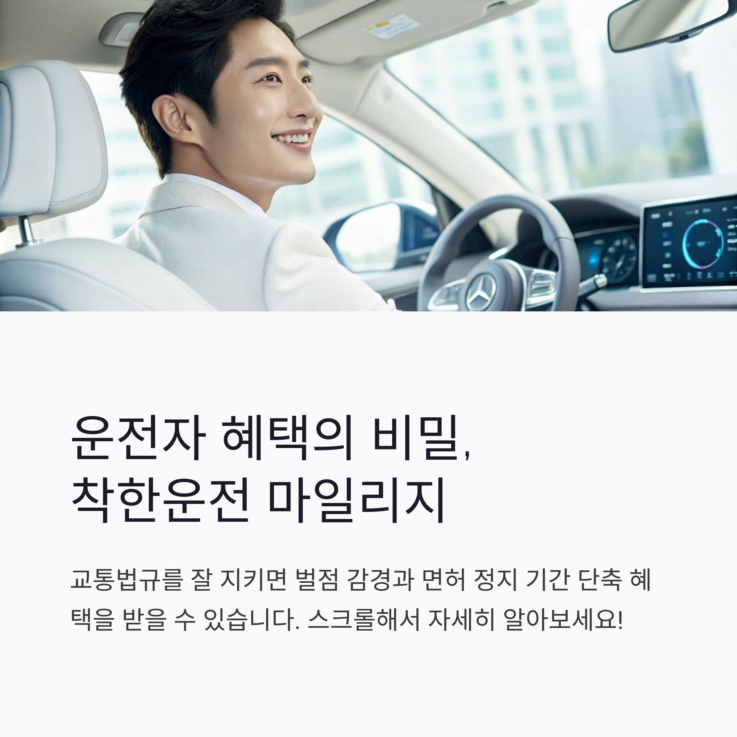 - 누적 마일리지는 면허 벌점 감경 및 면허 정지 일수 단축에 사용 가능