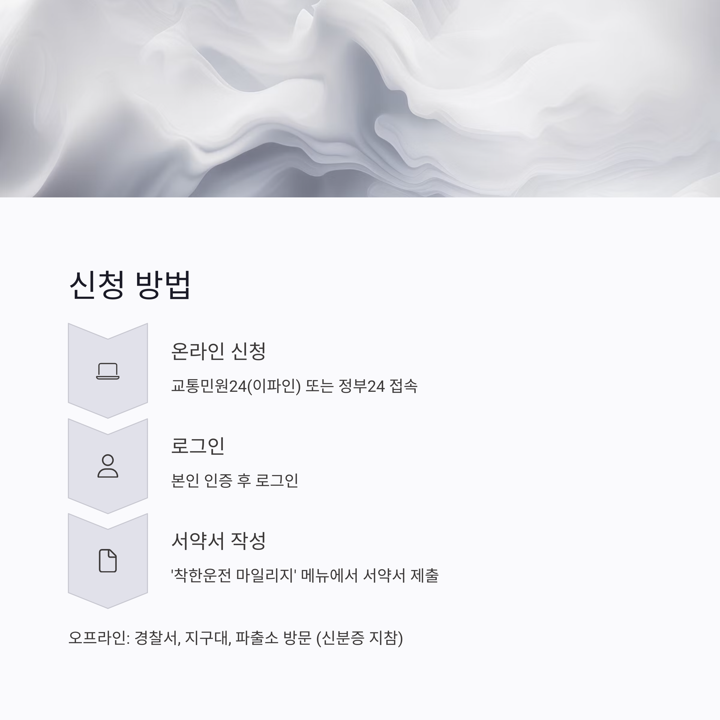 착한운전 마일리지는 안전운전 습관을 장려하고, 예기치 않은 벌점·정지 처분 시 실질적인 보호막이 되어주는 정책입니다. 매년 서약을 갱신해 마일리지를 꾸준히 쌓아두면, 언젠가 위기의 순간 큰 도움이 될 수 있습니다. 온라인·오프라인 모두 무료로 간편하게 신청할 수 있으니, 운전면허가 있다면 꼭 신청해두세요!